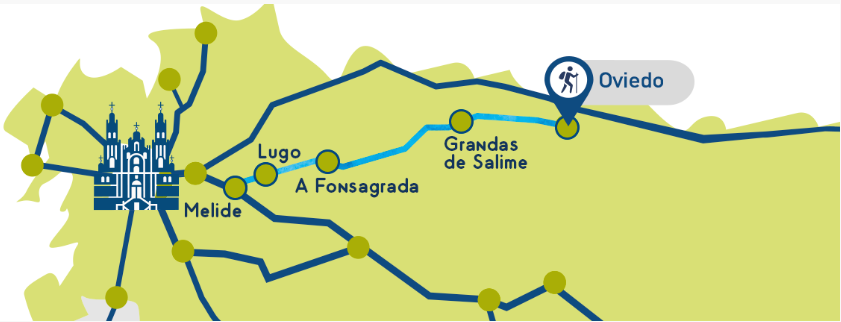 - 최초의 길(Camino Primitivo): 이 길은 초기 순례자들이 걷던 길이기 때문에 진짜 순례자의 길을 원한다면 선택하는 것도 좋은 것 같다. 야고보의 무덤이 발견된 813년부터 시작된 길이고, 다른 지역보다는 가까운 아스투리아스 지역에서 시작한다. 하지만 다른 길보다는 조금 더 험한 길이라는 건 비밀 ㅎㅎ 게다가 역사적이며 유산들이 많은 곳이다. 총 거리는 321km 이거 약 13 ~ 14일 만에도 도착할 수 있는 코스이다.