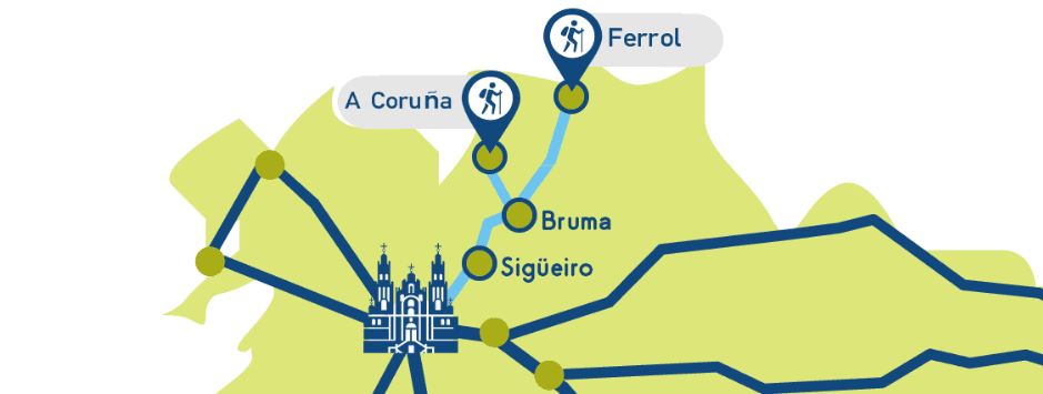 - 영국길 (Camino inglés): 페롤 (Ferrol) 에서 산티아고 데 콤포스텔라까지 120km의 길로 역사와 문화가 가득한 길이다. 걷는 내내 푸른 자연을 볼 수 있고, 다른 길에 비해서는 유명하지 않기 때문에 조용히 걸을 수 있는 길이다. 이 길은 페롤에서 시작하지 않고 아 코루냐 (A Coruña)에서 부터도 걸을 수도 있고, 75 km의 거리이다. 이 길은 페롤과 아 코루냐에 갈리시아로 들어갈 수 있는 항구가 생기기 시작하면서부터 생긴 길이며, 이 길로 영국 뱃선원들, 스코트랜드, 아일랜드, 스칸디나비아 반도, 네덜란드 사람들이 많이 이용하였다고 한다. 또한 십자군과 성전기사단들이 예루살렘으로 갈 때, 그 땅을 지켜달라고 야고보의 무덤에서 기도하기 위해서 아 코루냐에서 시작하는 길을 따라 순례하였다고 한다.