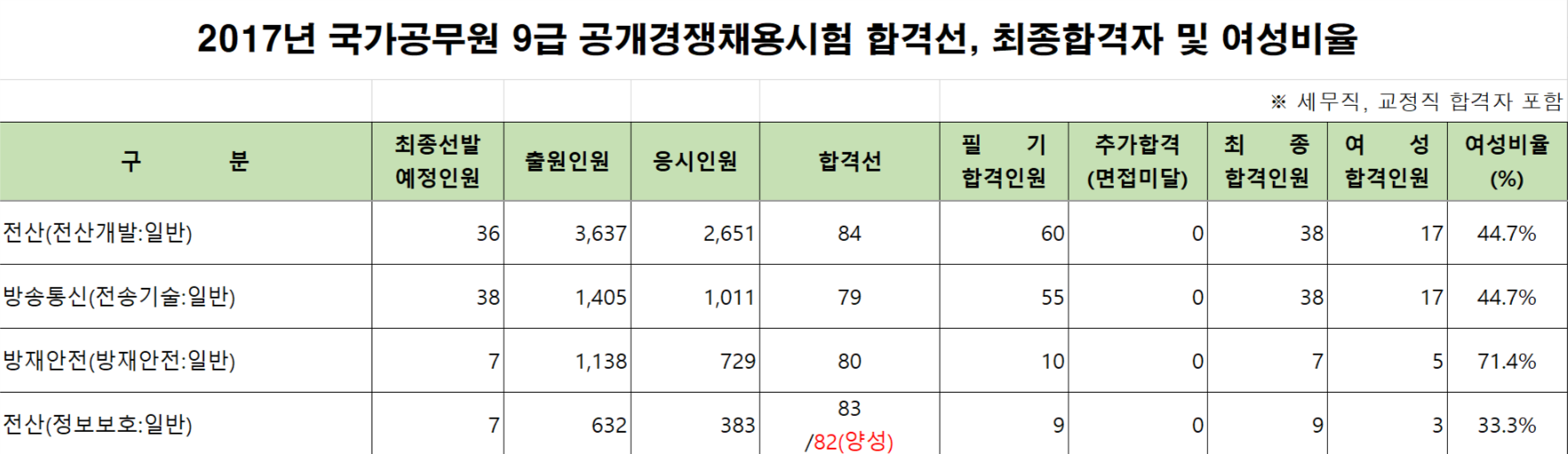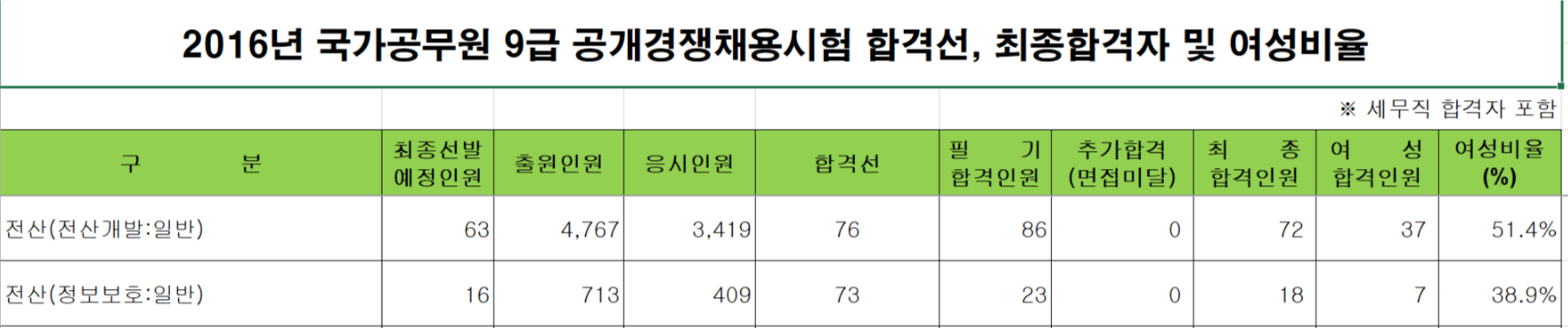 첨부파일에는 전 직렬의 합격선이 나와있어요. (사이버국가고시센터에 첨부된 자료라 수정이 불가해요..ㅎㅎㅎ)