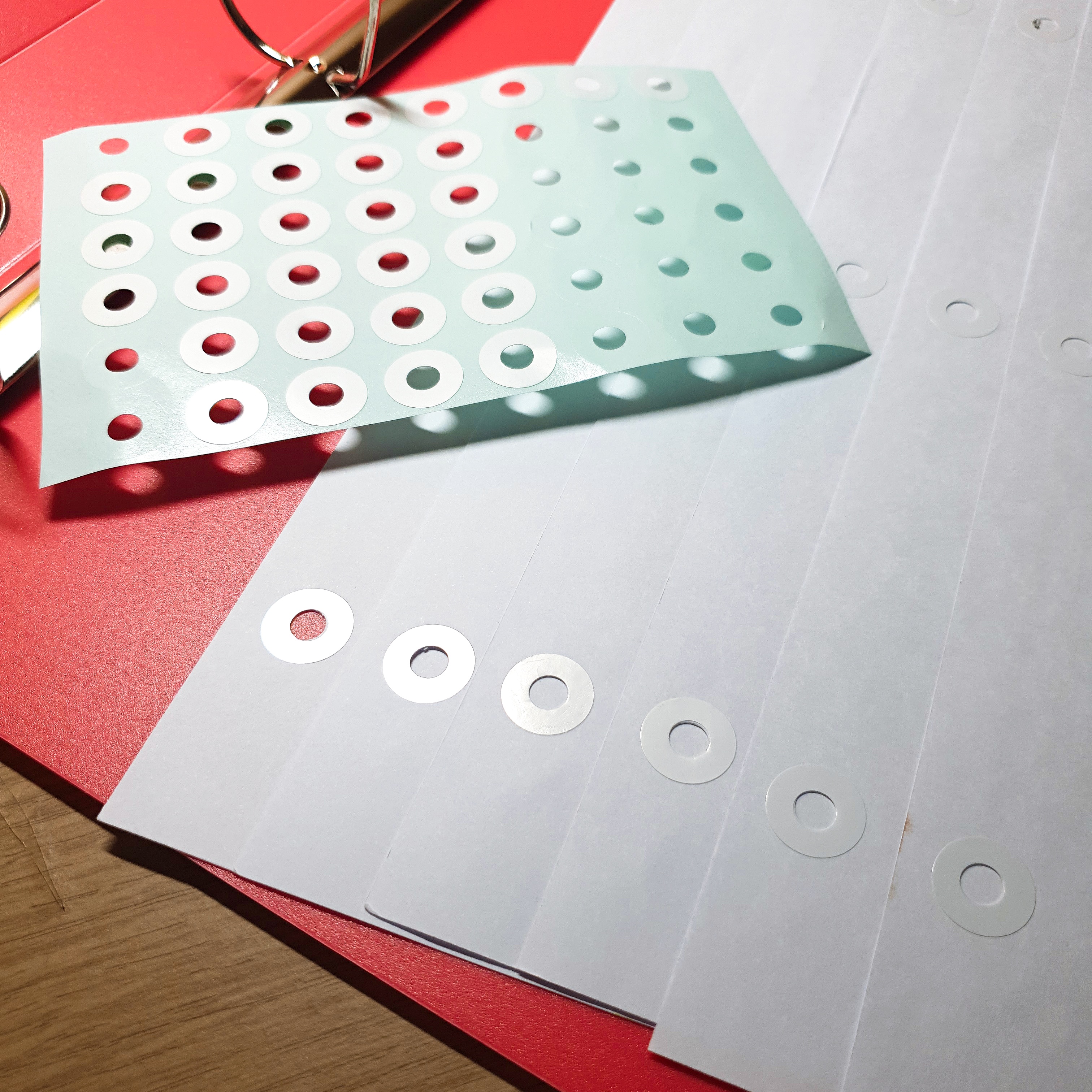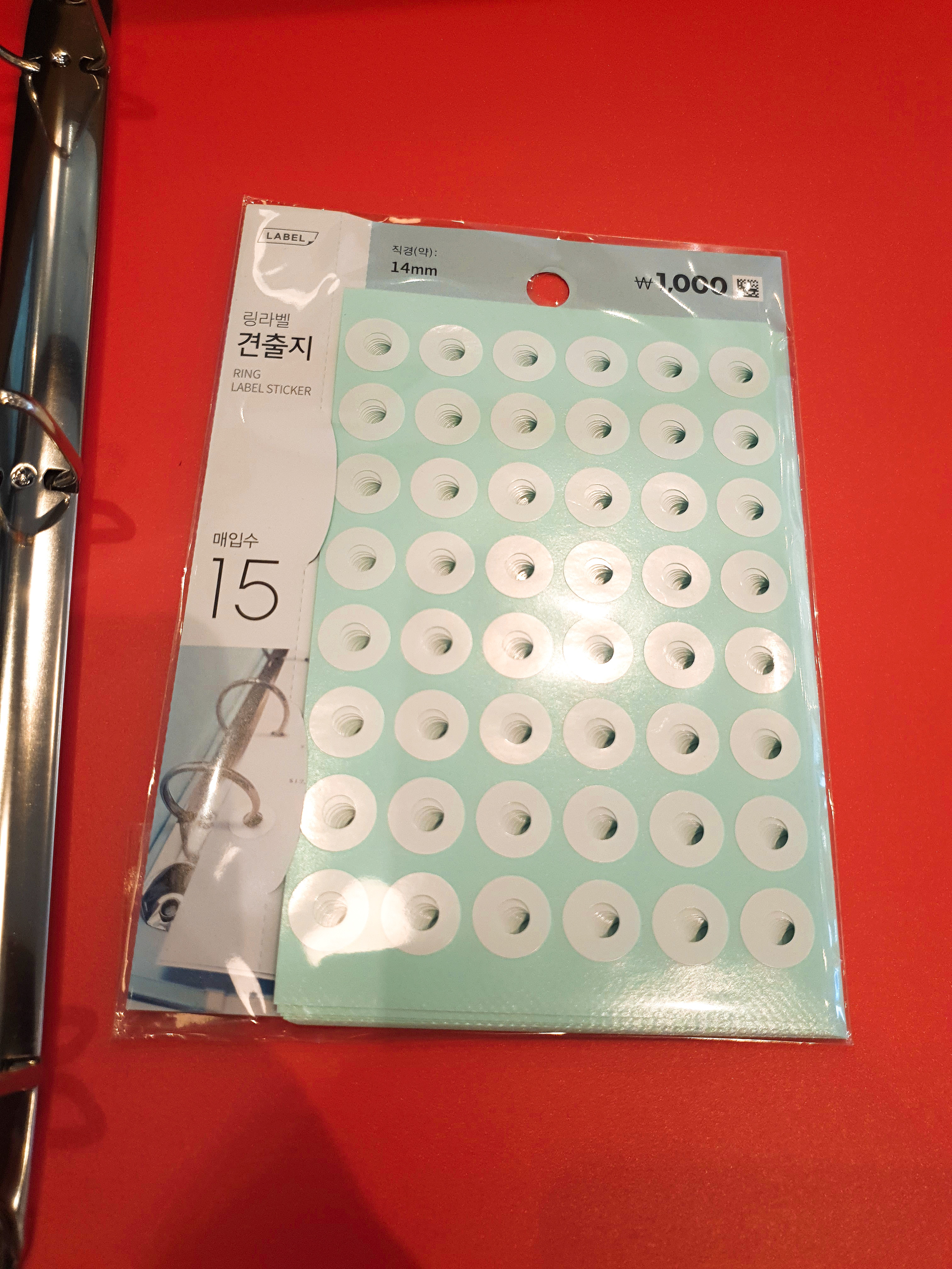 그리고 프린트의 구멍 부분이 찢어질까봐 링라벨 스티커도 같이 샀다. 종이에 구멍을 뚫고 그 부분이 찢어지지 안에 구멍 주변에 붙이는 스티커이다. 다이소엔 흰색밖에 없었고, 인터넷에는 다양한 색이 판다.