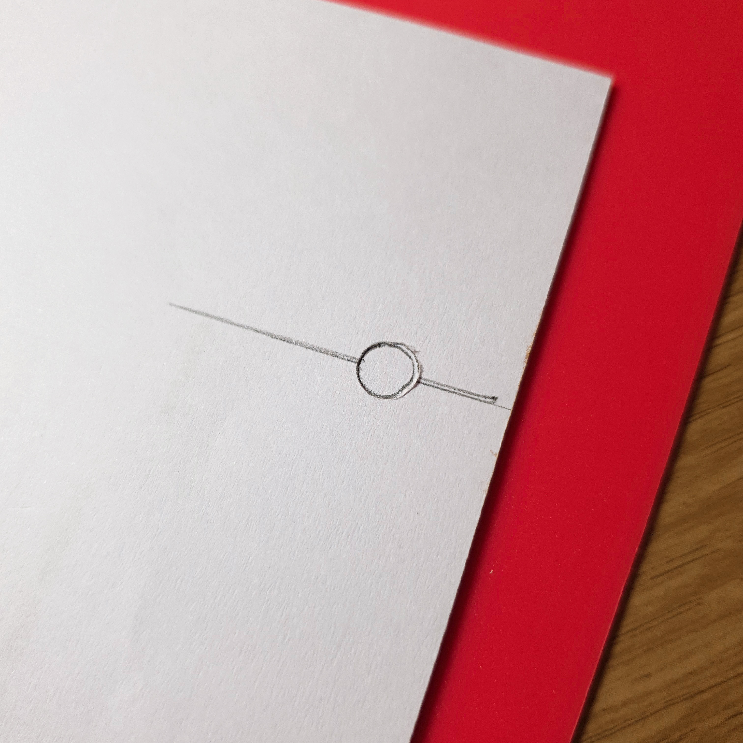 펀치를 뒤집어 들고, 그어 놓은 선이 중간에 오도록 하고 펀치로 뚫는다.