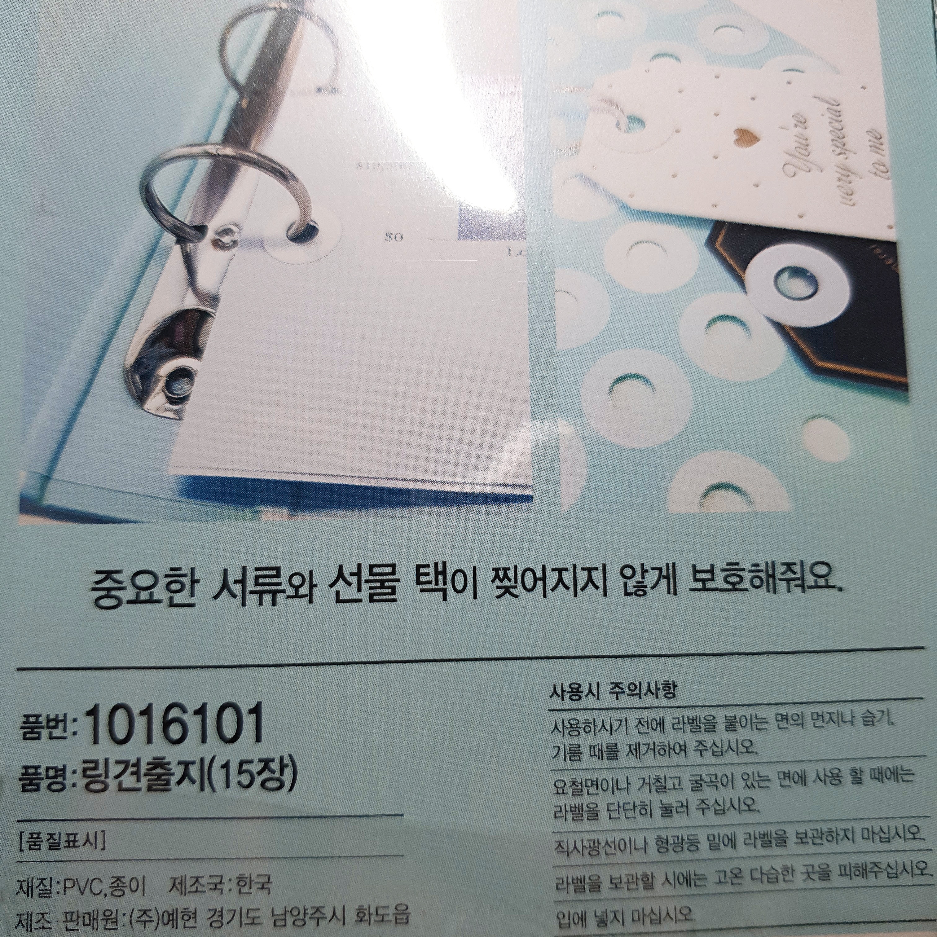 '중요한 서류와 선물 택이 찢어지지 않게 보호해줘요.'