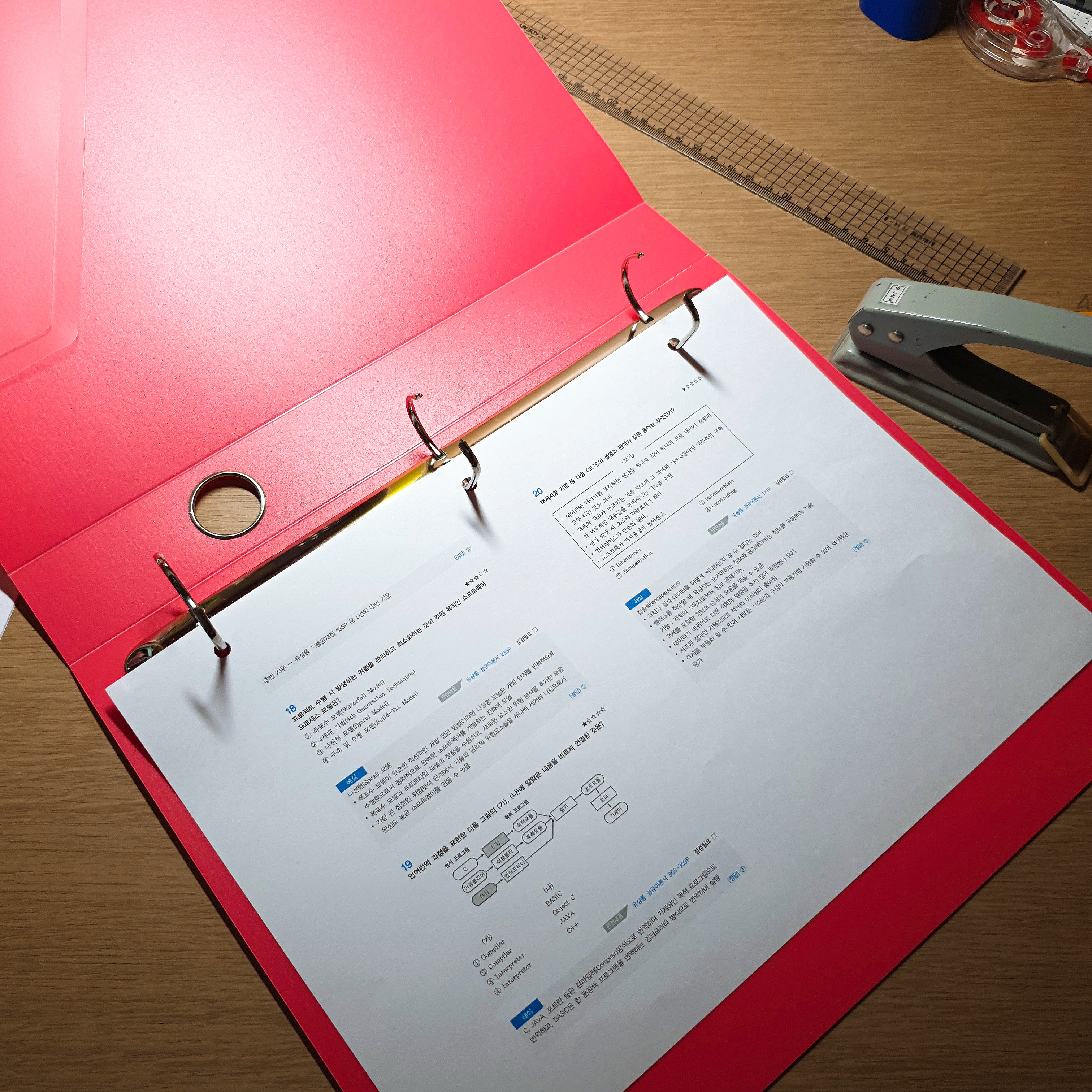 프린트에 필기도 깔끔하게 하고 정리한 내용도 추가해서 바인더에 정리하면 나중엔 좋은 공부자료가 될 것 같다.