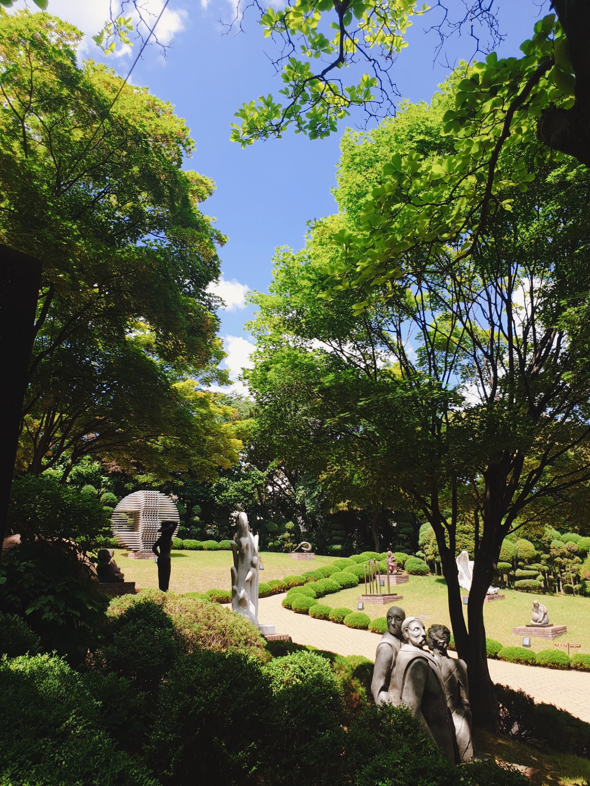 조각공원은 쭉 뻗은 내리막 길을 따라 있어서 뻥 뚫린 시원한 느낌이 든다.