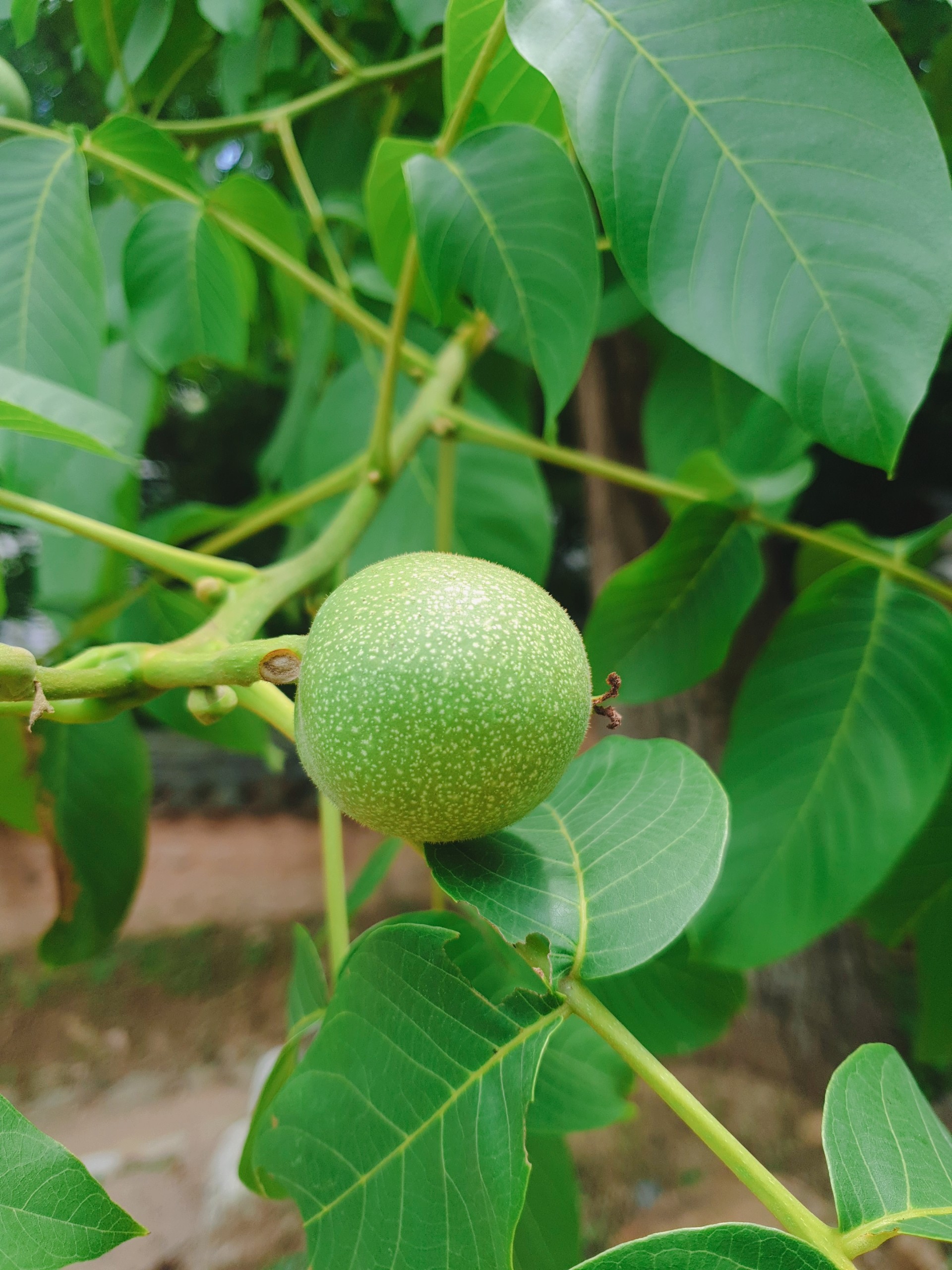 우리가 알고있는 뇌처럼 생긴 호두 견과류가 처음에 저렇게 초록색 반질반질한 열매였다고 한다.
