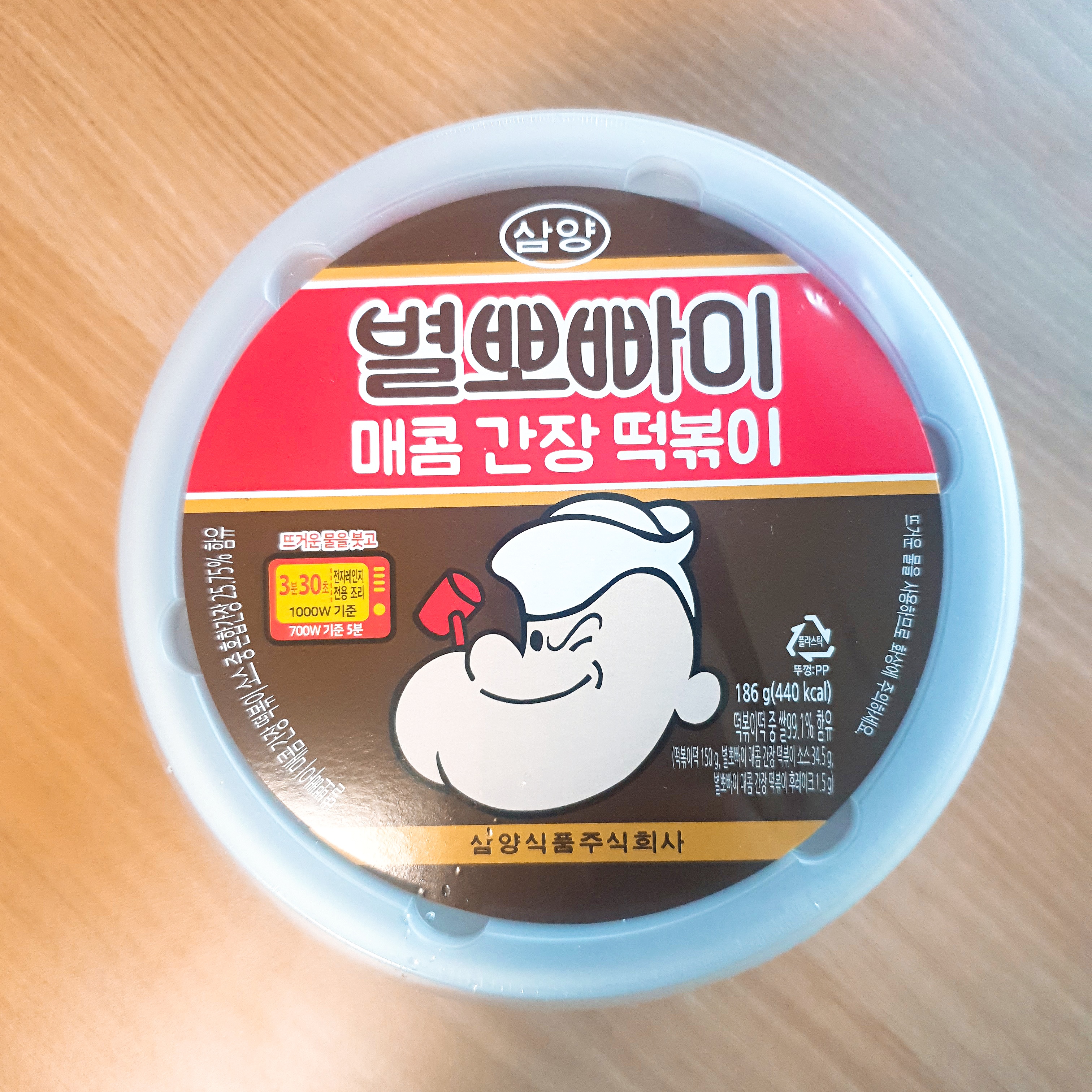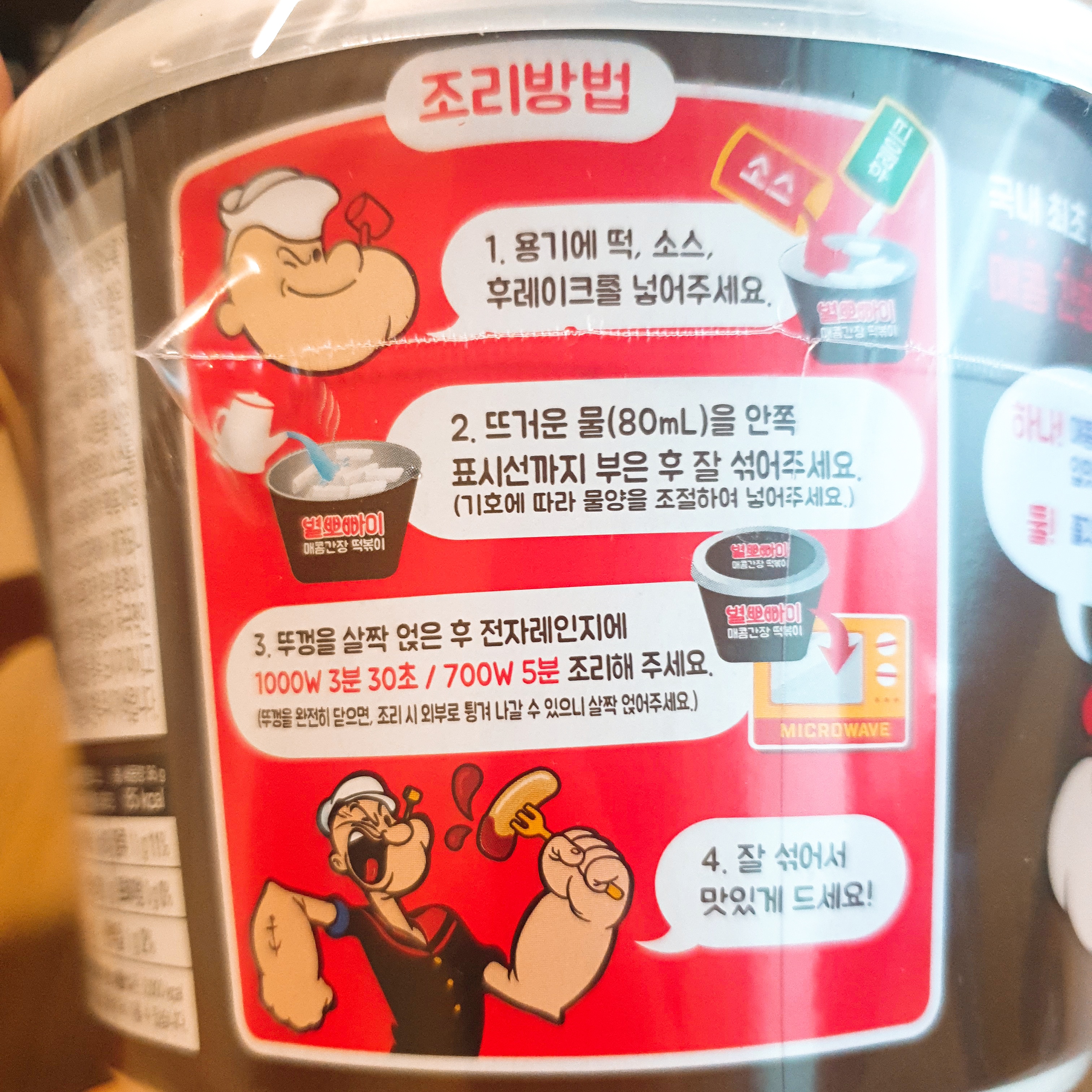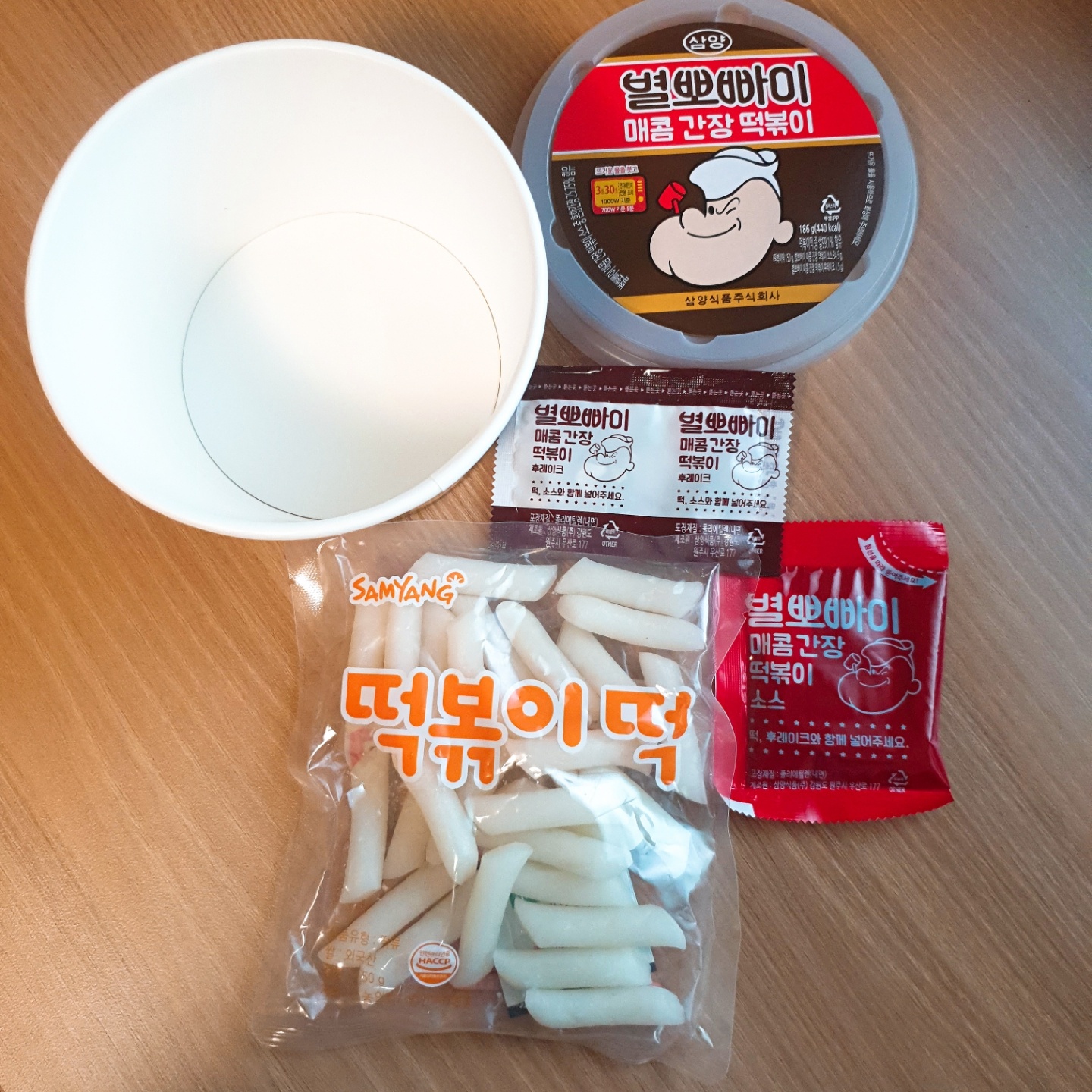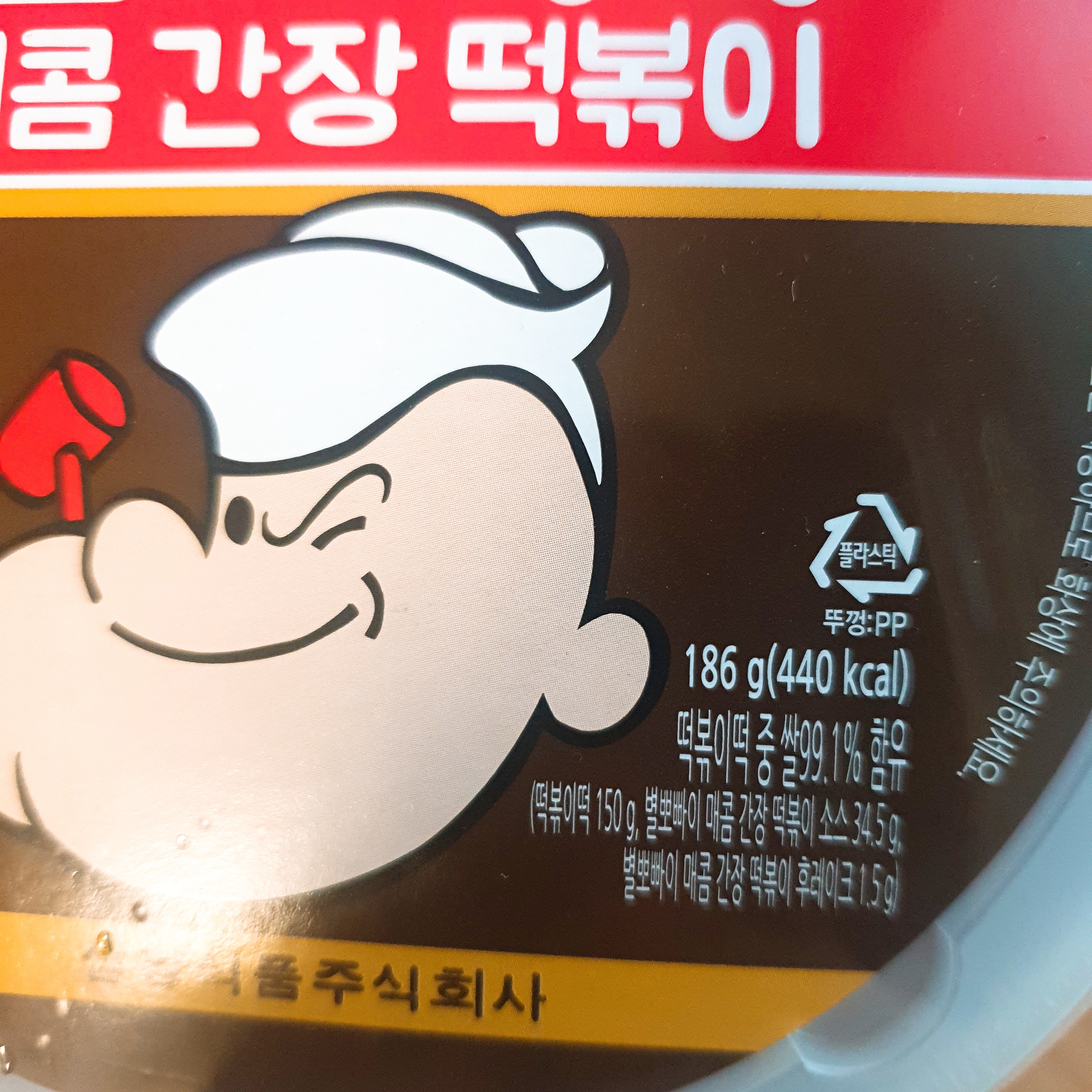 오늘은 편의점에서 '별 뽀빠이 매콤 간장 떡볶이'를 사먹어 보았다.
