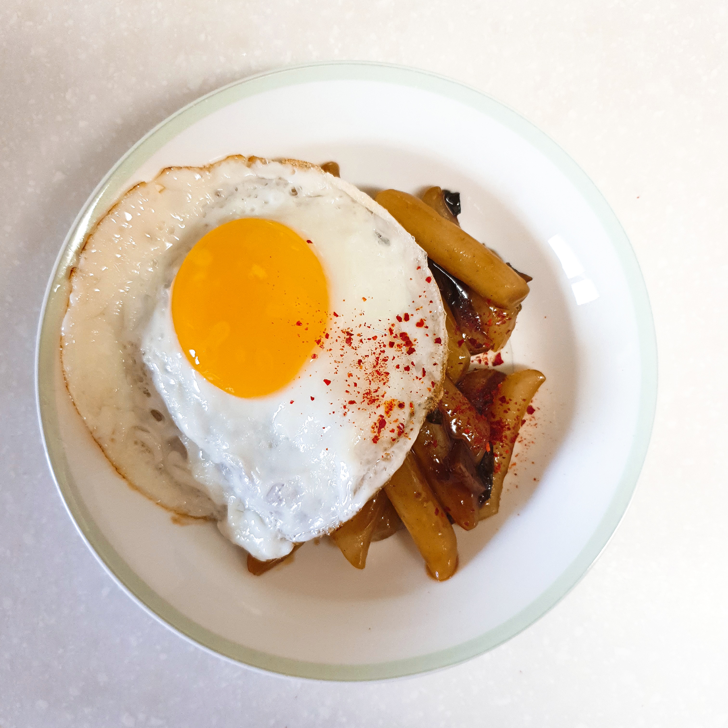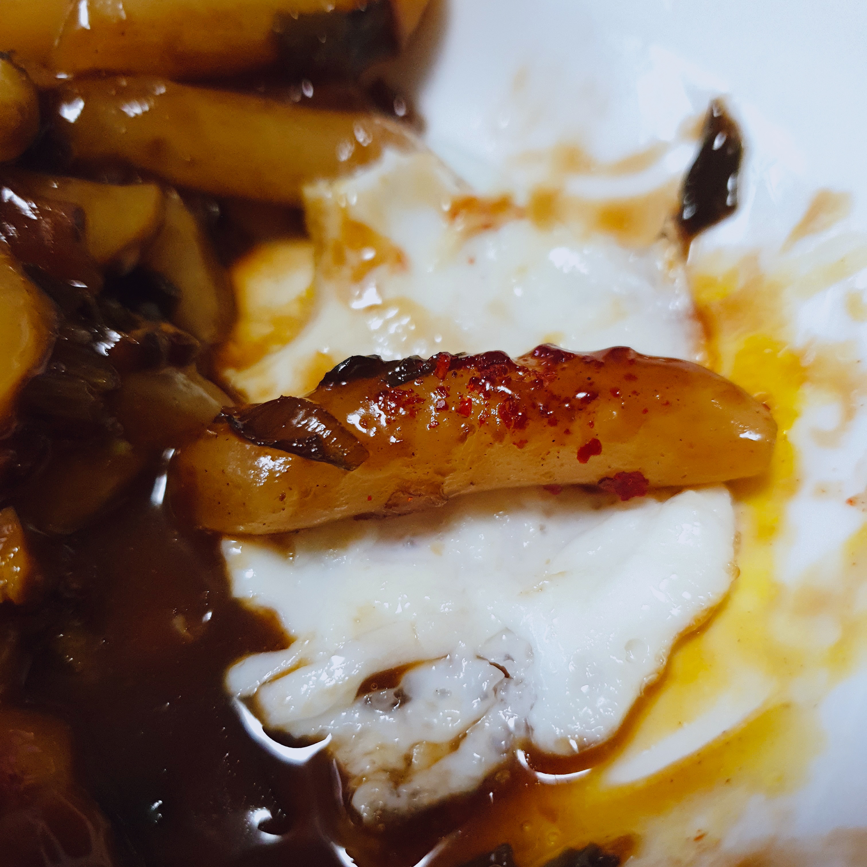 떡에 소스가 쏙 배어 맛있었다. 계란 후라이 반숙도 완전 성공한거 같아서 좋다.