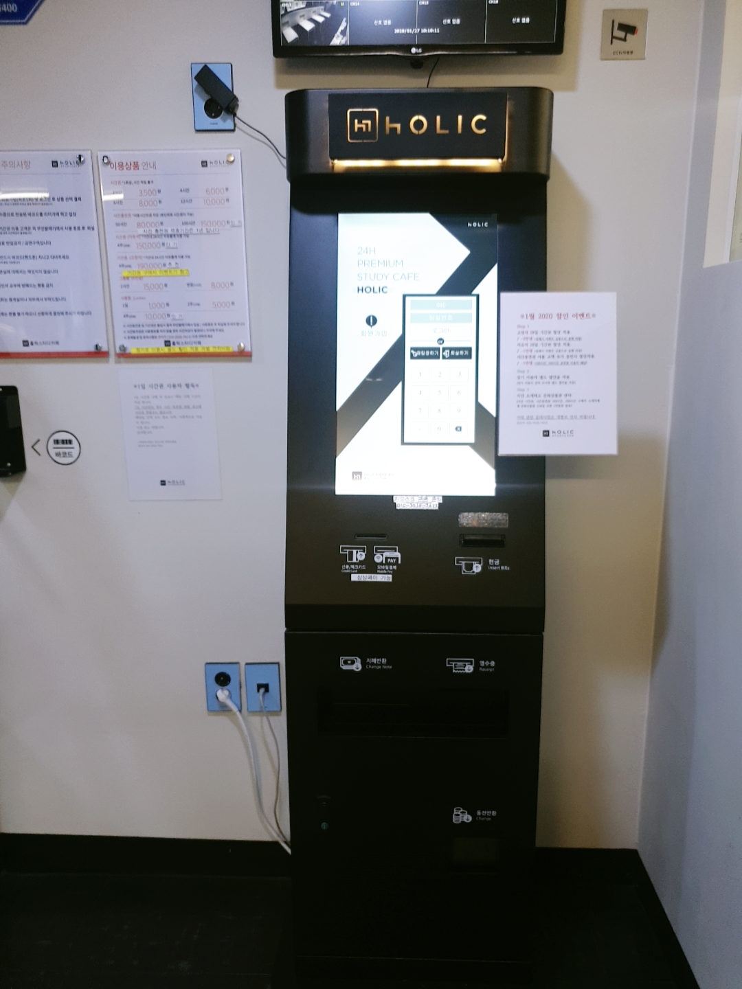 24시간 무인으로 운영되는 곳이라 입구에 이용권을 구매할 수 있는 키오스크가 있다.