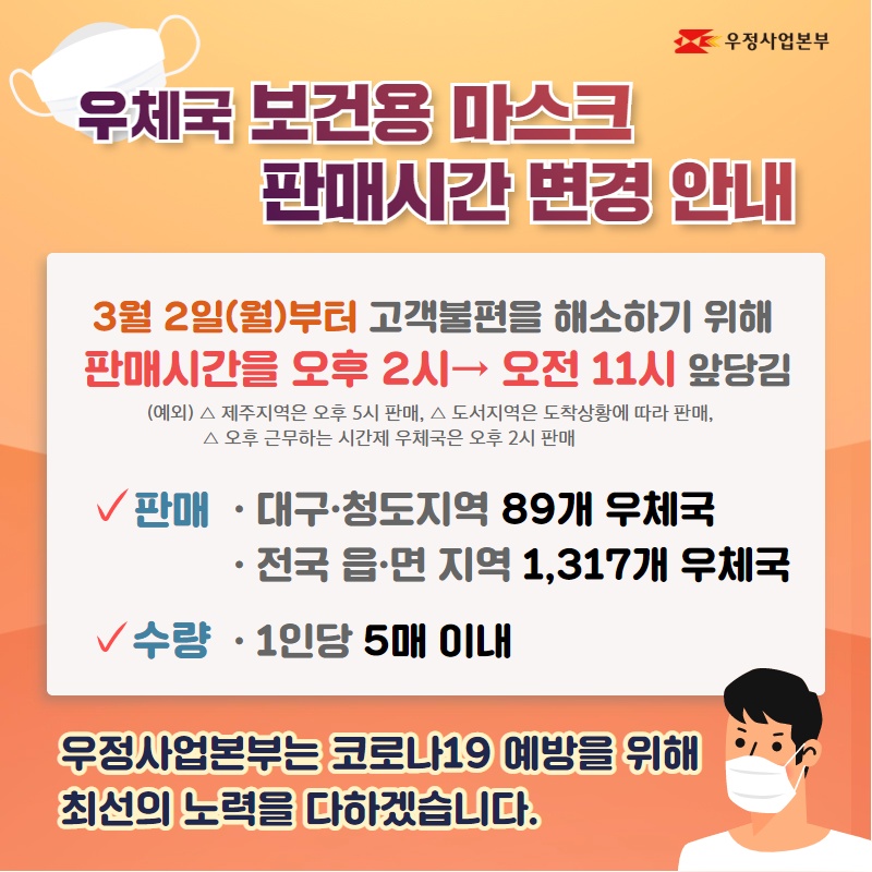 (3.2.판매) 보건용 마스크 우체국창구 판매 계획