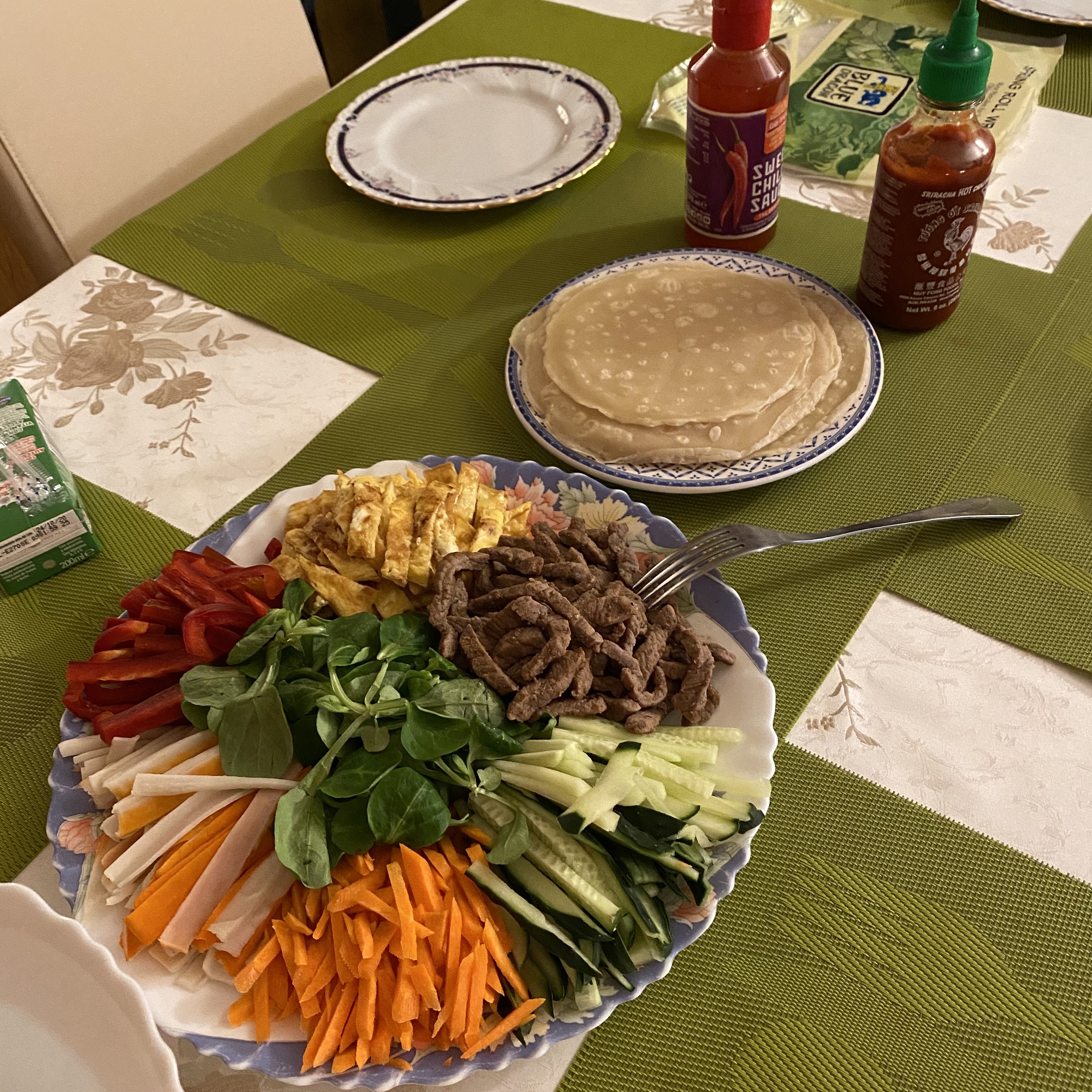 오후가 되었는데, 막 배가 계속 불러있었는데, 저녁시간이 되어서 저녁을 먹었다. ㅋㅋㅋㅋ (뭐 계속 먹기만 한다. 무슨 명절인가) 저녁은 베트남 월남쌈을 했다!! 이틀 전에 잠깐 큰 쇼핑몰에 들렀을 때, 스리라차, 라이스페이퍼, 스윗칠리 소스를 발견해서 사와서 해먹었다. 뭐 월남쌈 별거 있나, 야채들 많이 넣고, 고기 조금 넣어주면 되는거 아닌가 ㅎㅎ