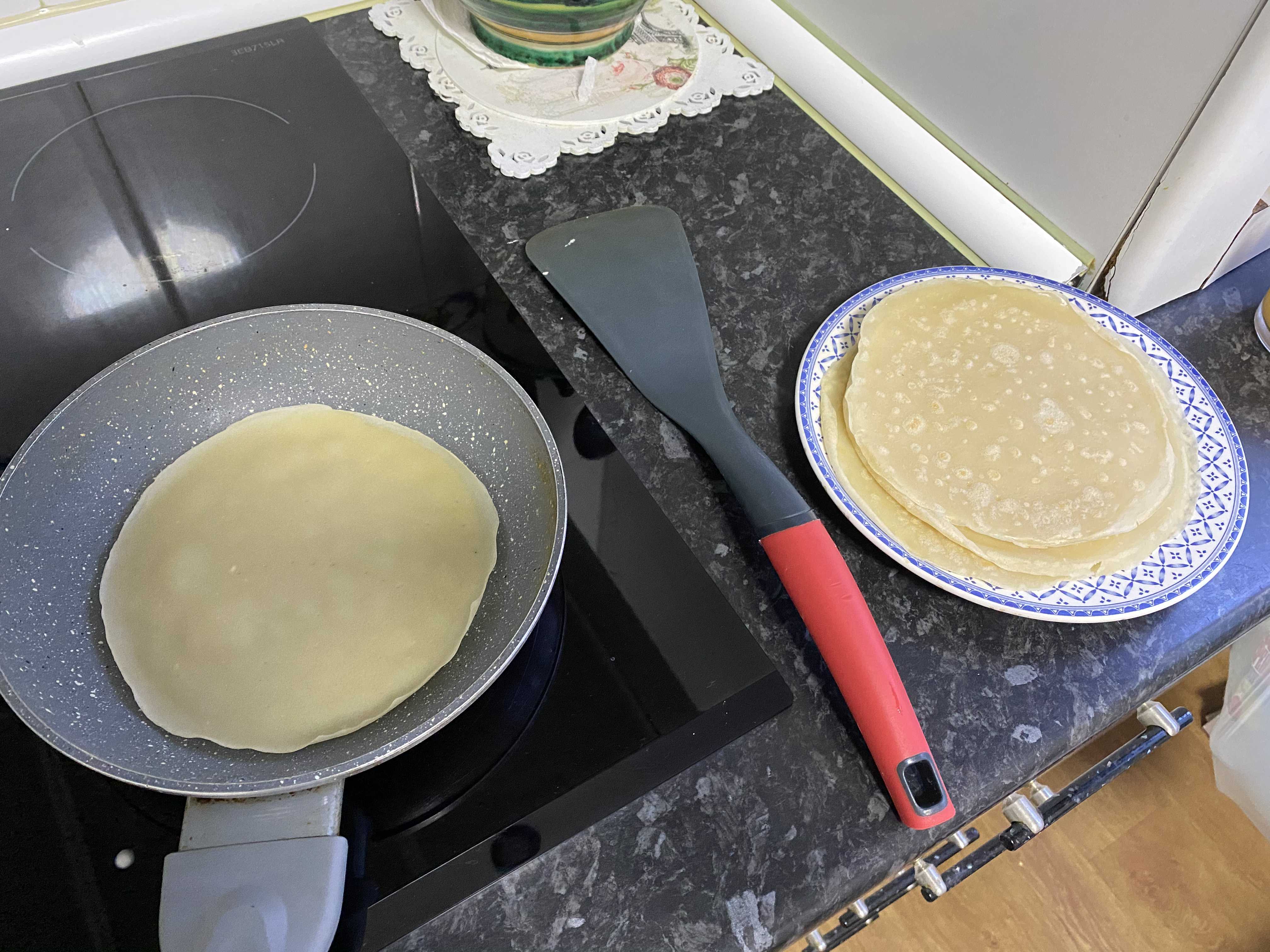 여기서 산 라이스 페이퍼는 한 팩에 12개 밖에 없고, 하나에 3유로가 넘어서ㅜㅜ (너무 비싸다) 라이스 페이퍼 대신에 밀전병도 크게 만들었다. 그래봤자, 6개 정도 더 만든 것 같다. 밀 전병을 만든 후, 월남쌈에 원래 들어가는지는 모르겠지만, 계란도 부쳐서 넣었다.