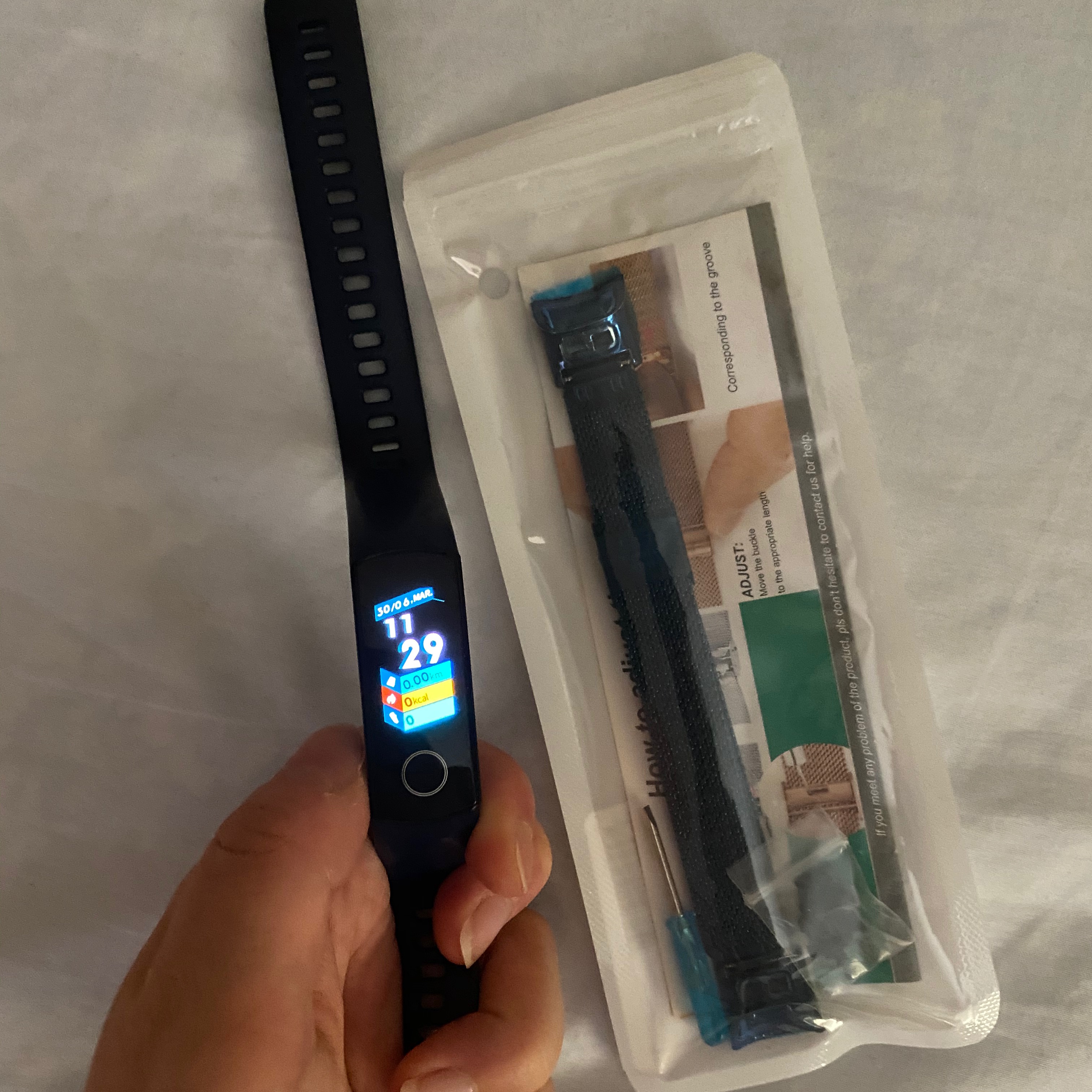 그리고! 사실 남자친구가 집에 있는데, 모올래 선물을 하나 샀다. 스페인에는 한국과 달리 샤오미와 화웨이 핸드폰을 정말 정말 많이 쓰는데, 남자친구가 화웨이 핸드폰을 가지고 있어서, 연동시키기 편하려고 화웨이 honor band 4를 가지고 있었다. 평범한 실리콘 시계줄이었는데, 얼마전에 고정시키던 끈이 끊어졌다. 줄이 헐렁헐렁 거리고 고정이 되지 않으니 불편하다고 그 이후로는 잘 끼지 않더라 그래서 사지 말라는 거 몰래 스테인리스 끈 하나 주문했다. 여름이고 하니 조금 시원하지 않을까 싶어서 헤헷