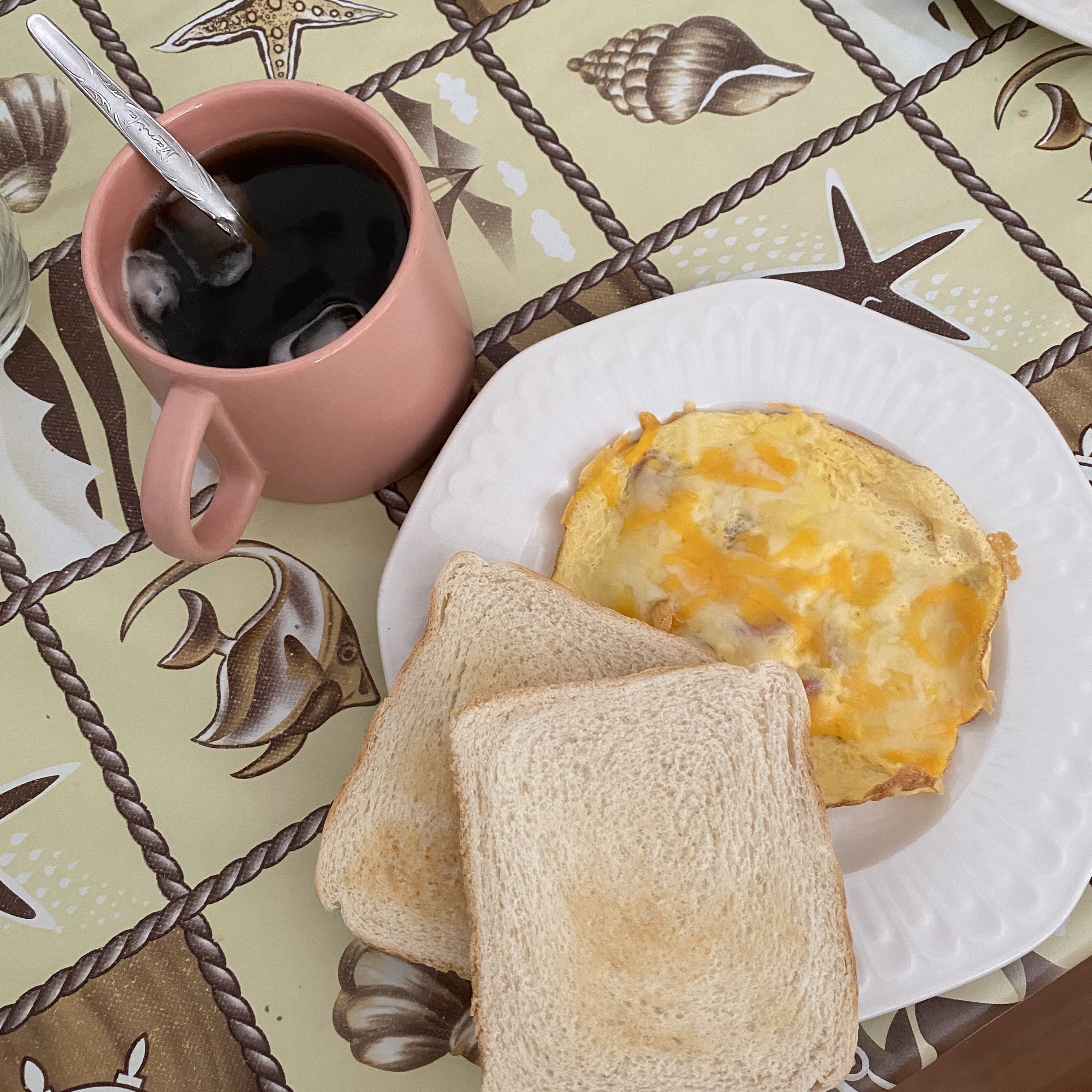 9시쯔음 느즈막히 일어나서 일을 잠깐 하다가 아침을 먹었다. 아침은 간단히 계란 후라이 + 소시지 + 치즈와 토스트와 커피! 더우니 커피에 얼음까지 동동.