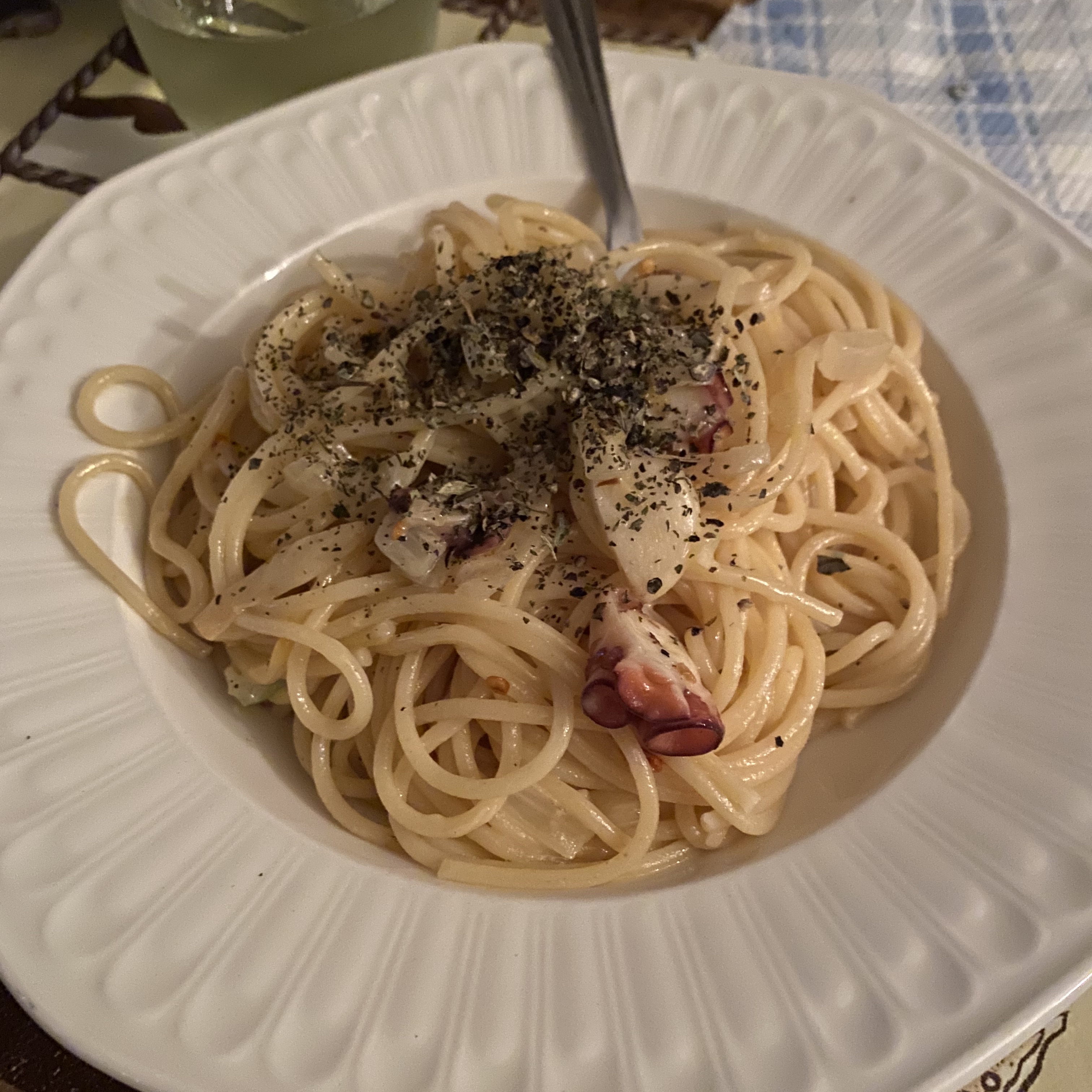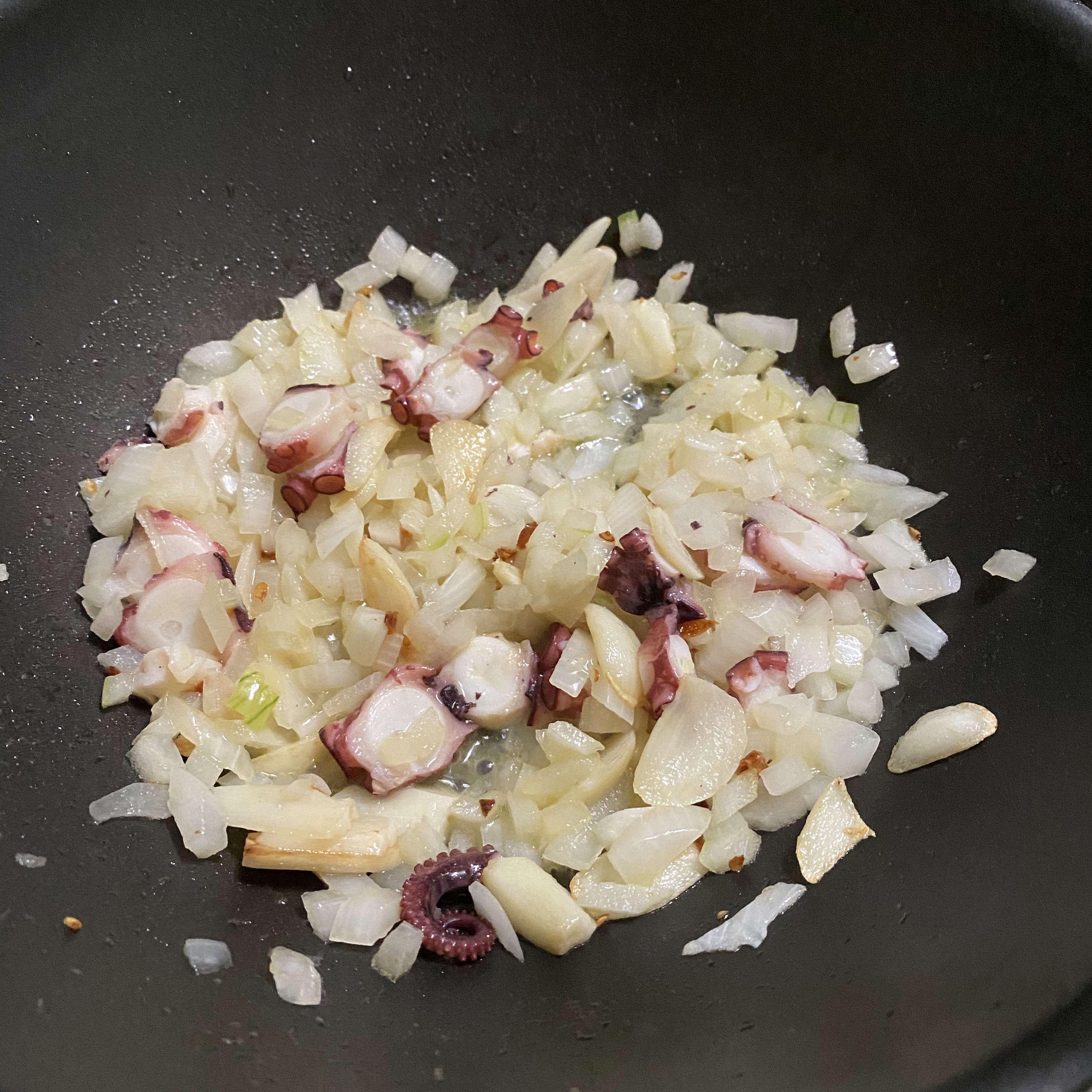 그리고 저녁은 마늘, 양파 문어 넣고 만든 마늘 파스타이다. 냠 너무 올리브 오일로 했는데, 향이 정말 너무 좋았다.