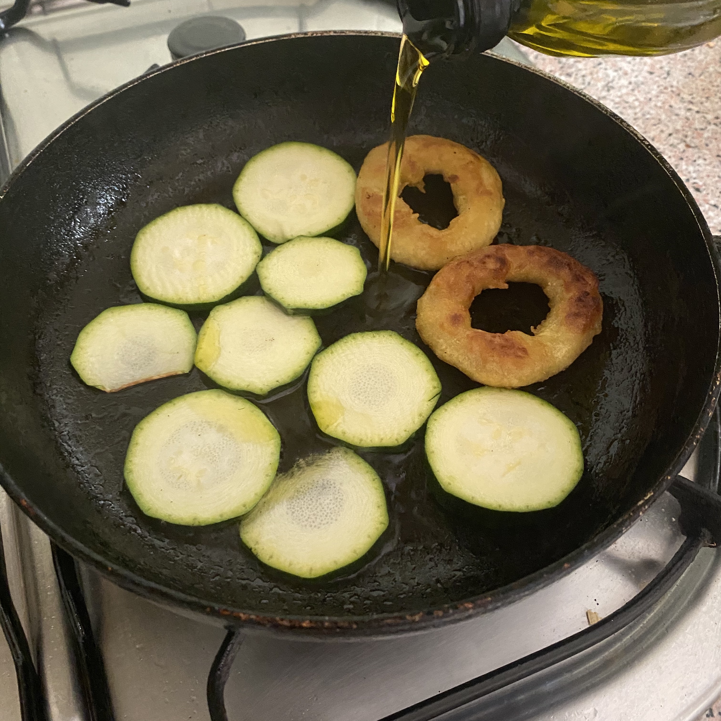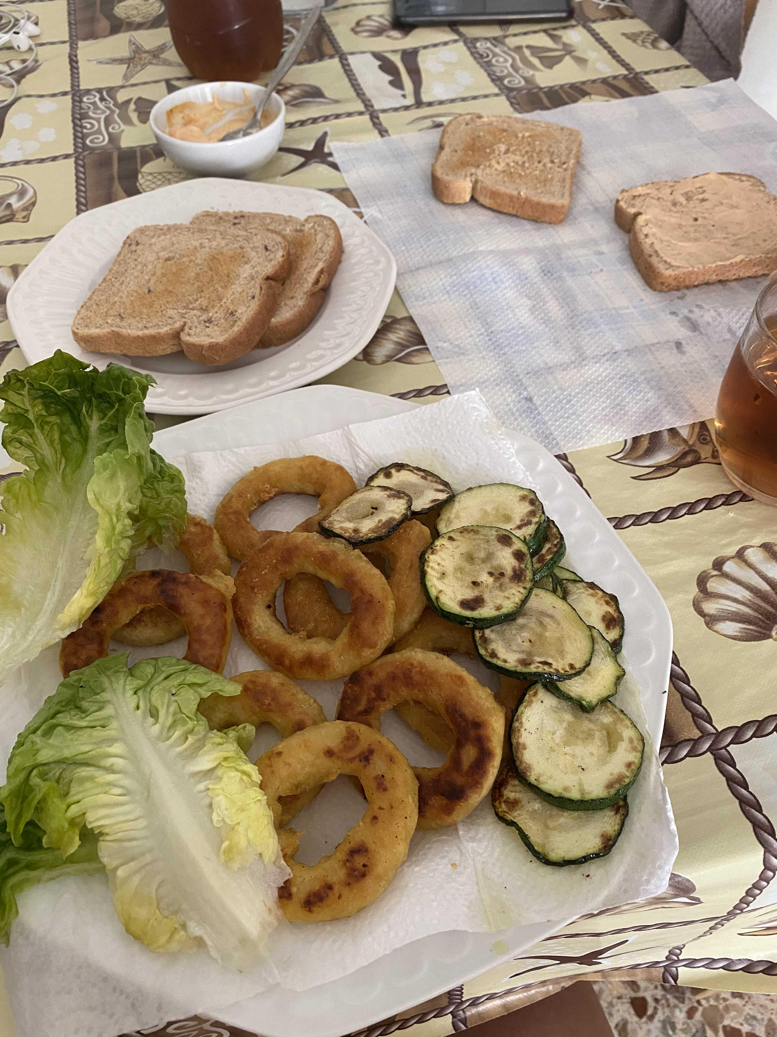 아침을 뭘 먹을까~~ 하다가 오징어 튀김과 호박을 먹었다. 호박 얇게 잘라서 굽고, 오징어 튀김 봉지가 있었어서, 기름을 살짝 넣고, 구워?튀겨? 먹었다.