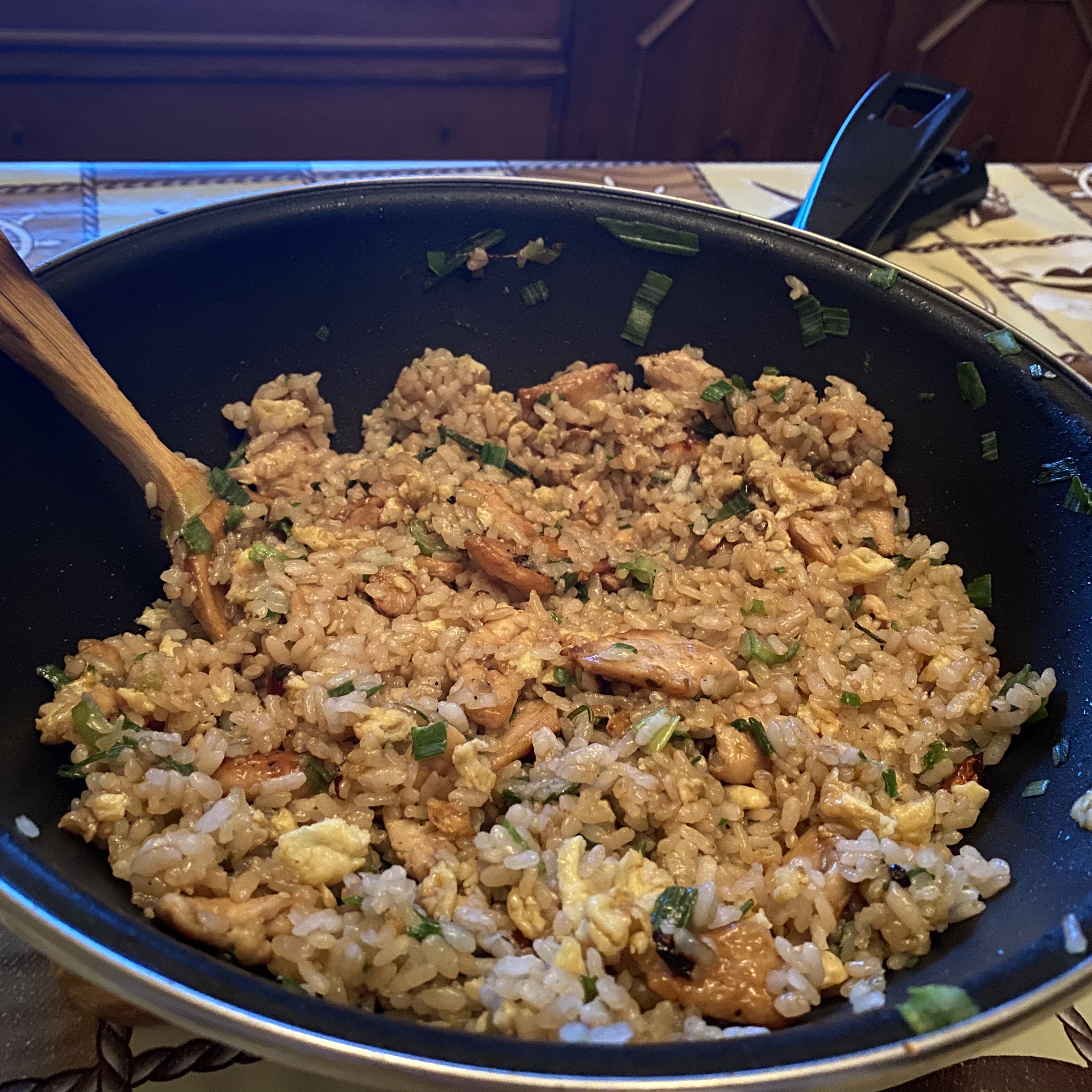 요렇게 셋이서 먹고, 맥주가 다 떨어져서 근처에 아직 문 연 마트에 가서 33cc짜리 맥주 12개를 사왔다. 근데, 진짜 맛없다. (혹시 스페인 여행하시다가 그럴일은 없겠지만, coviran이라는 마트에서 coviran 맥주는 절대 사지 마세요. 스페인 맥주가 웬만하면 한국보다 훨씬 맛있는데, 진짜 이 맥주는 coviran 맥주는 절대 절대 안되요, 너무 맛이 없어요) 그리고, 저녁은 친구가 준비해주었는데, 우리나라로 치면 볶음밥같은? 닭고기와 간장 (근데 간장이 없어서 굴소스) 그리고 파 넣고, 달걀 풀어서 밥이랑 볶은 볶음밥이다. 그 친구도 페루 사람인데, 페루에서는 많이들 이렇게 해 먹는 것 같다.