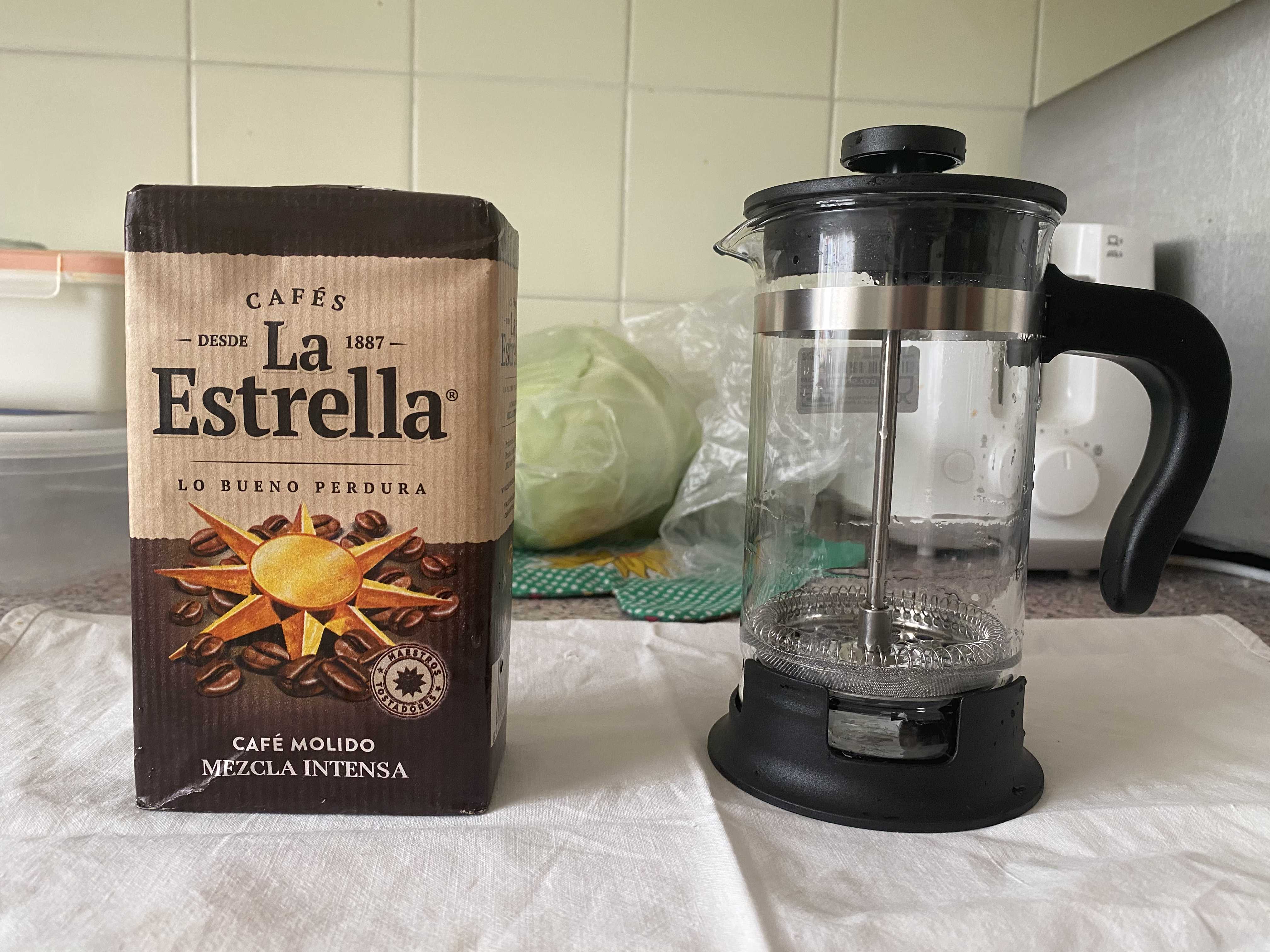 프렌피 프레소는 깨끗하게 씻어서 준비하고, 커피도 준비했다. 잘 보면 café molido // mezcla intensa라고 적혀 있는데, 원두가 갈려있다고 말하고 있고, 아마 진한 맛을 내는 게 아닐까 싶다.