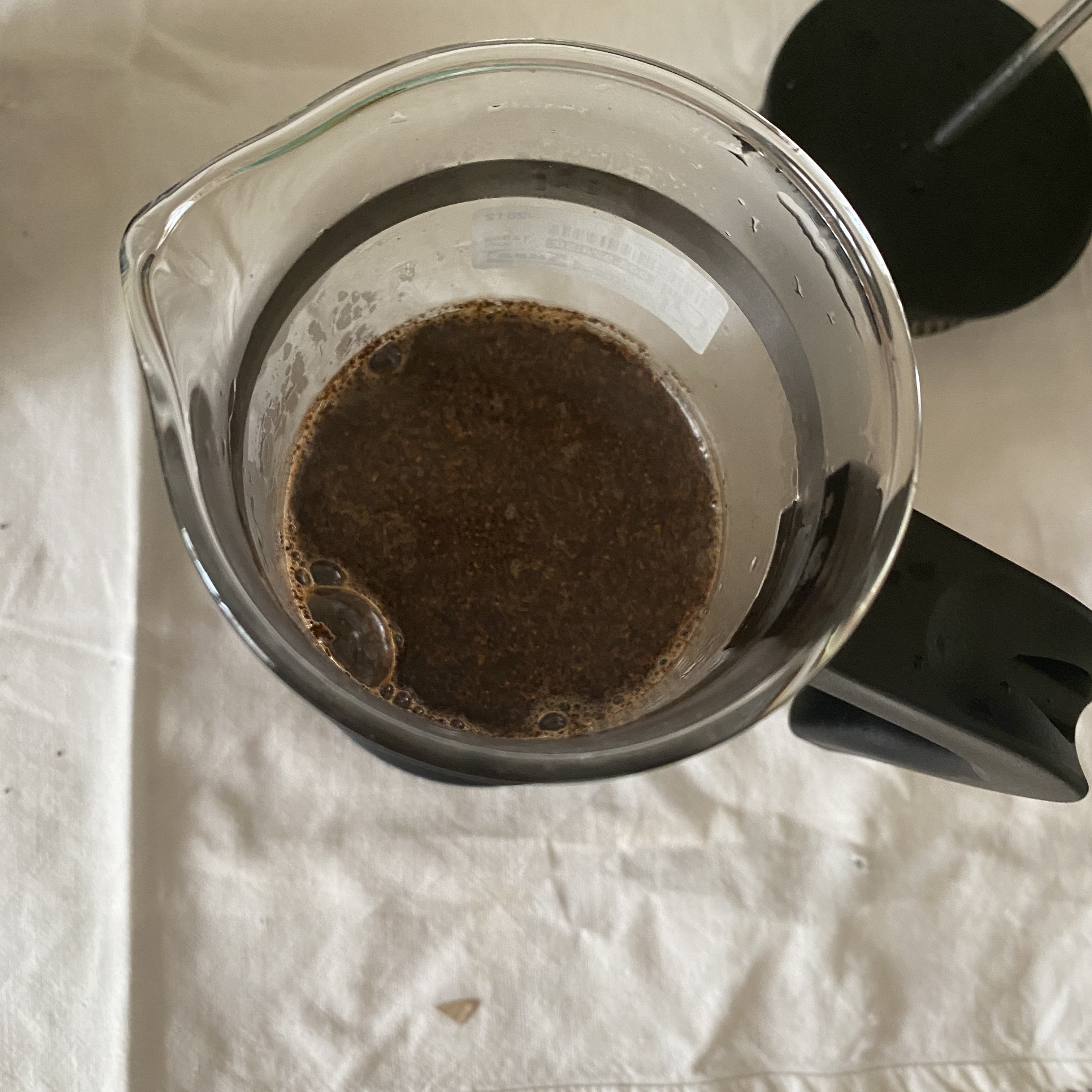 위에 잘 뜯어서, 커피 가루는 두 숫가락 정도를 넣었다. 뜨거운 물을 넣고 5분을 기다려 준 후에 쭉 위에를 눌러주면 커피가루를 필터링한다.