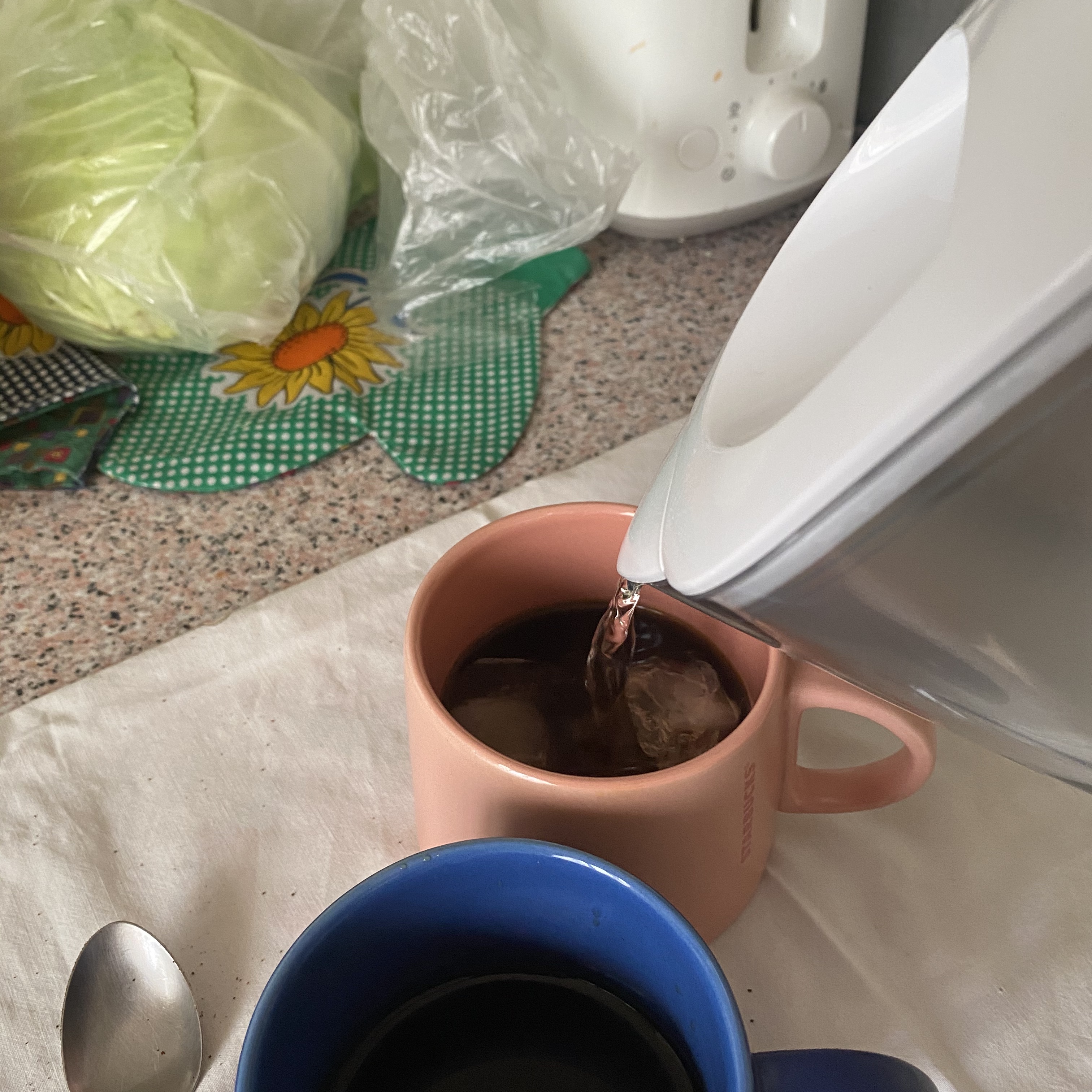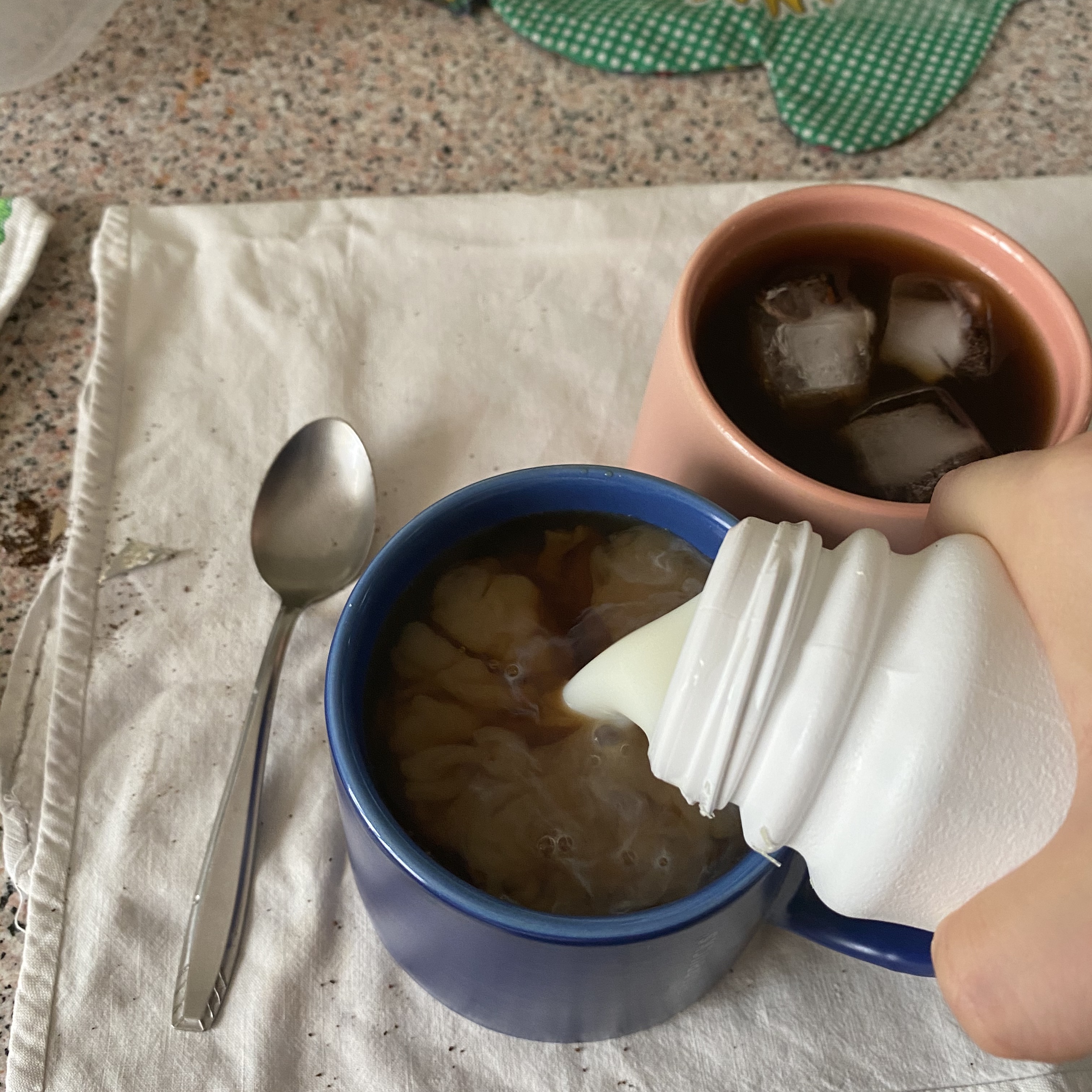 요기 이렇게 얼음을 넣던가 안넣던가 취향에 따라서 컵을 준비해준 후에, 나는 물을 조금 더 넣어주고, 남자친구 컵에는 우유를 넣어줬다. (사실 물을 조금 더 넣었어도 됬는데, 계산을 제대로 못해서 물을 쪼끔만 끓였다 헤헷 처음이라)