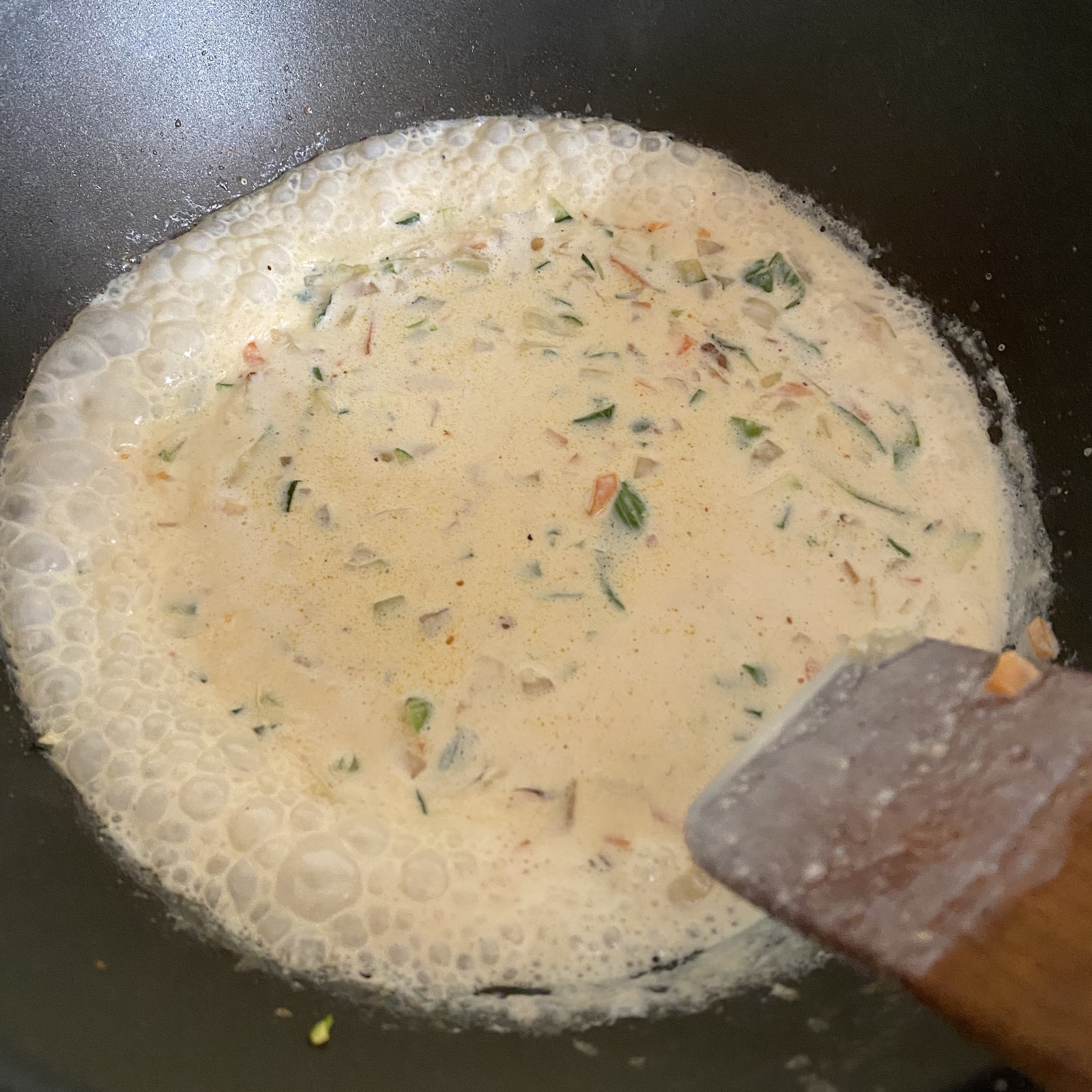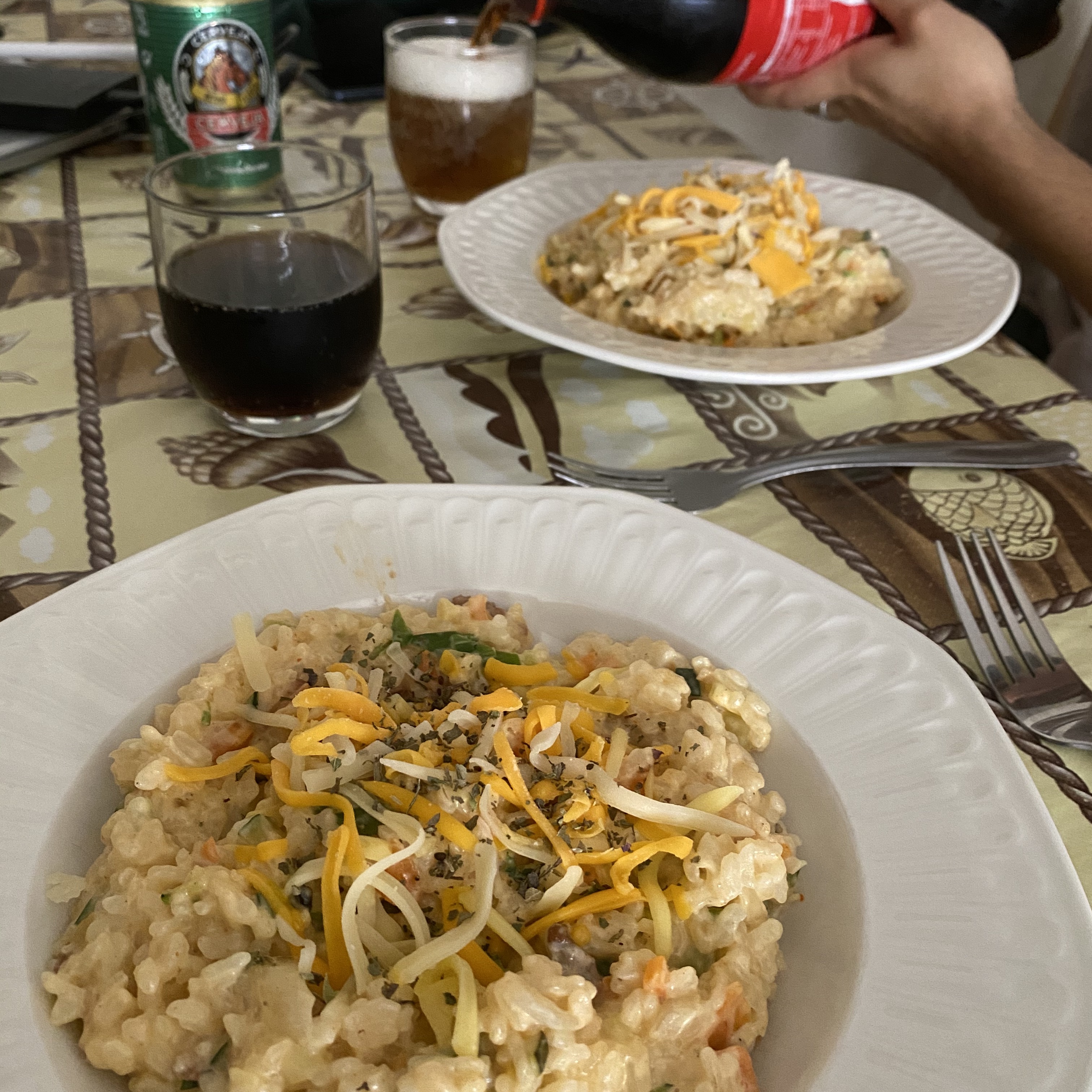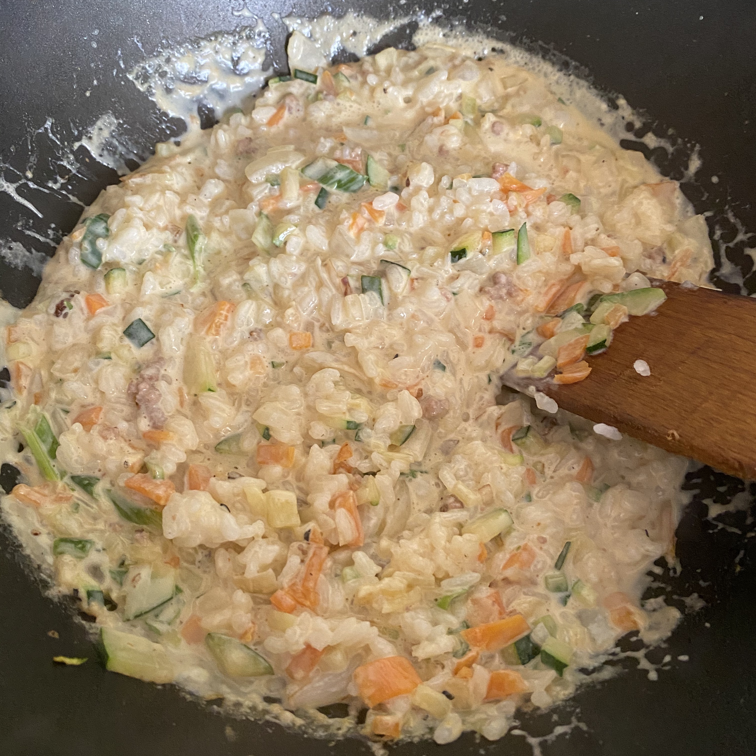 점심으로는 어제 남은 소스를 조금 이용해서 야채를 더 자르고, 소스를 더 만들고 이번에는 밥을 넣어서 리조또를 만들었다! 크림 파스타이다 보니, 크림을 넣어야 했는데, 마지막 팩이라서 반만 넣고 ㅎㅎ 우유를 넣었다.