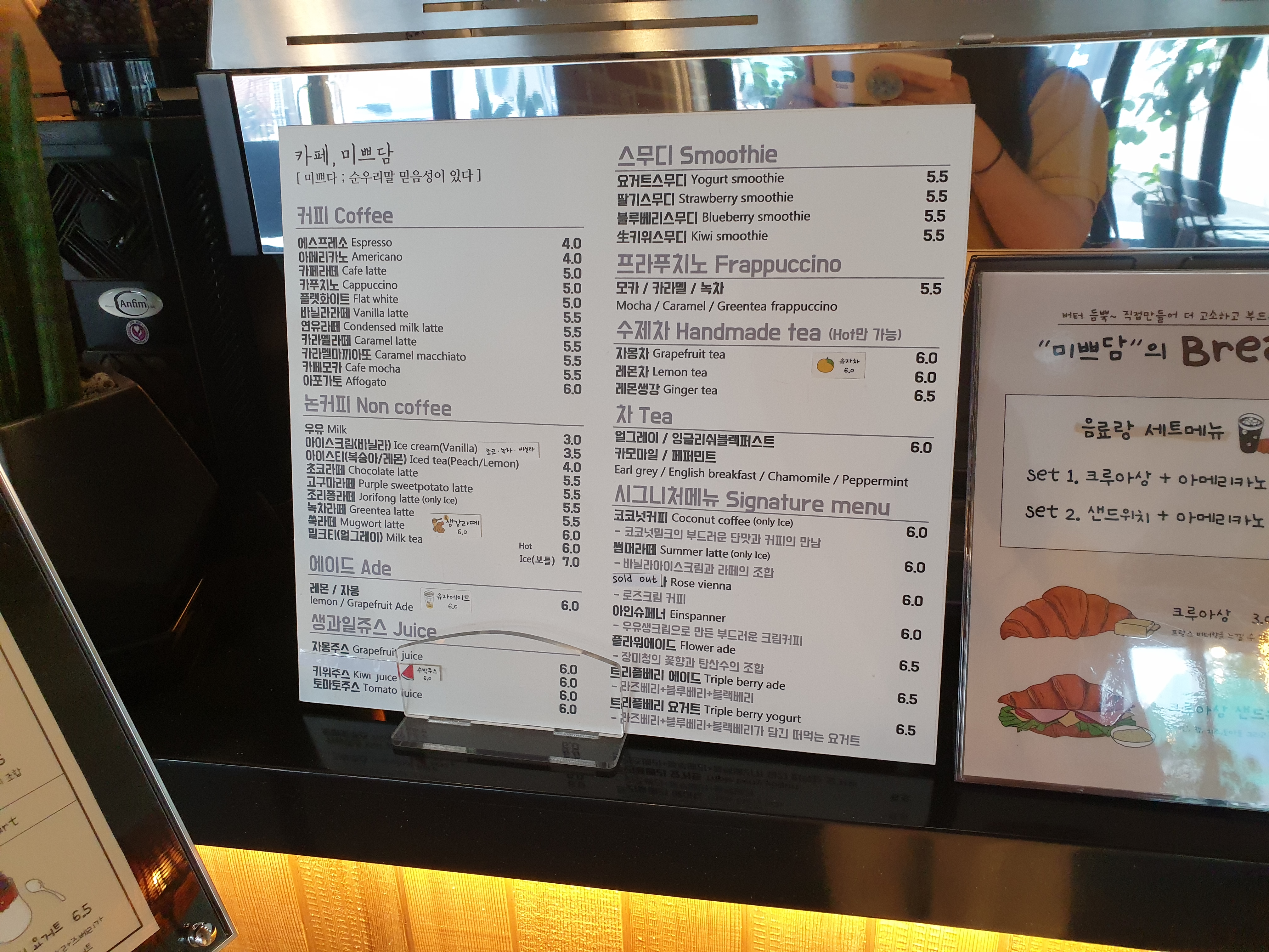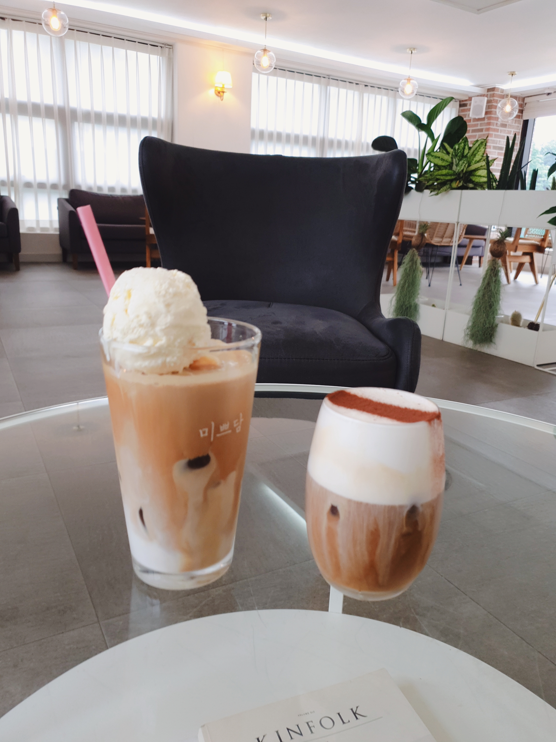실은 오늘까지도 계속 카페 이름을 '미쁘다'로 알고 있었는데 사진찍을 때 카페 이름이 '미쁘담'이라는 걸 눈치챘어요.