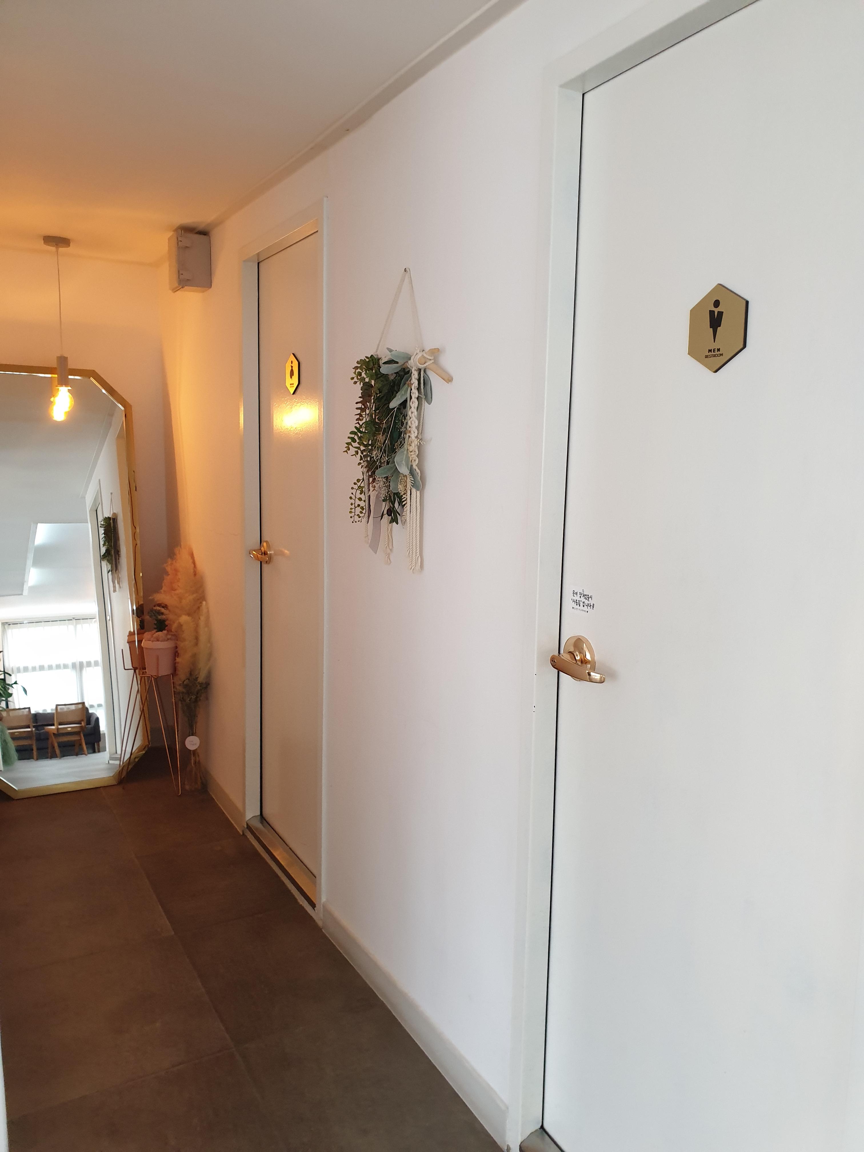 화장실은 2층에 있습니다. 저는 카페에 갈때 화장실이 중요해요. 화장실이 깨끗하고 좋으면 다음에 또 오고싶은 생각이 들어요. 카페는 음료를 계속 마시니까 화징실을 자주 가고 화장실이 중요하다 생각하는 편인거 같아요.