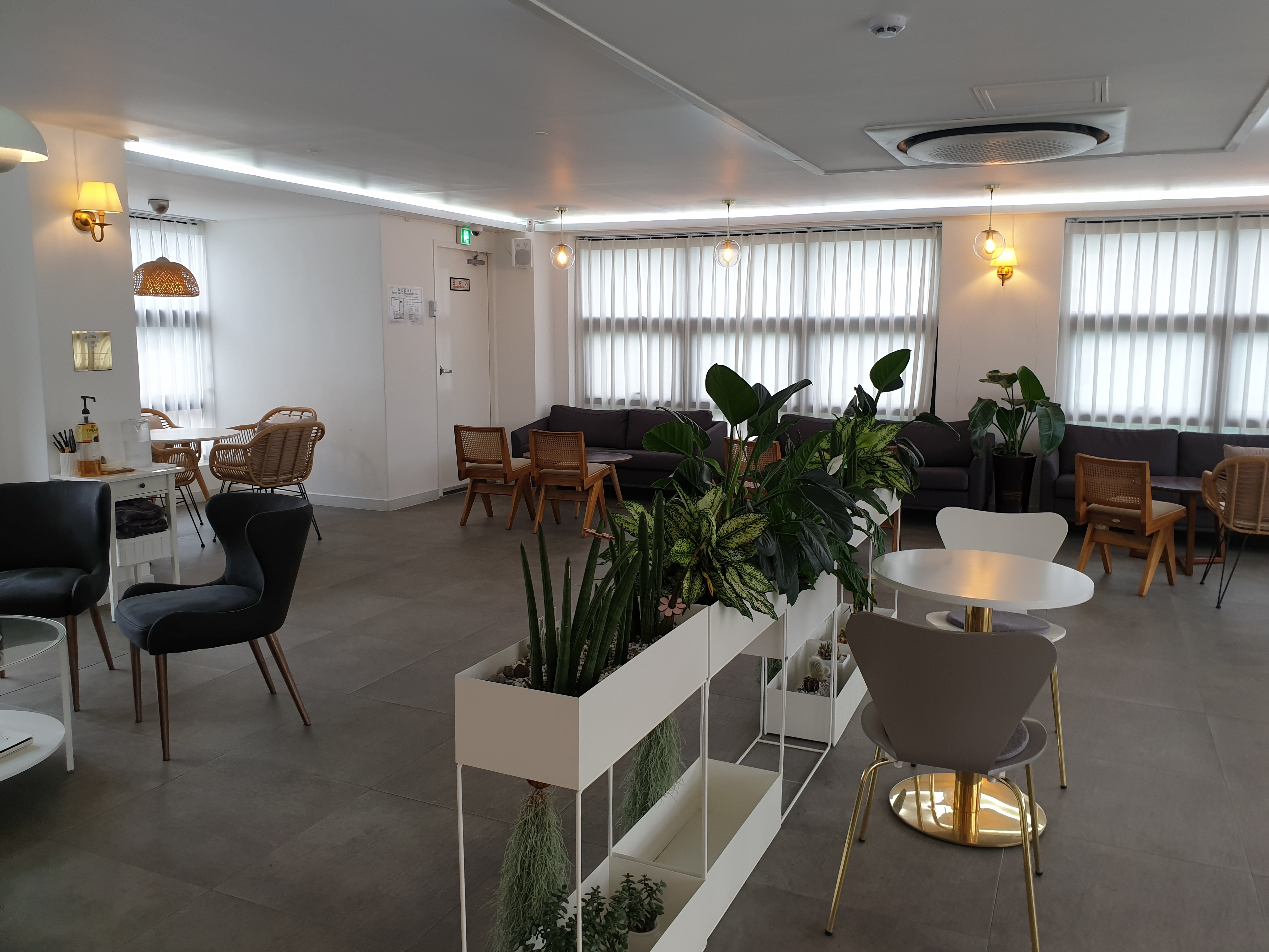 다른 스타일의 긴 테이블이 두 개나 있어서 여럿이서 오기 좋을거 같아요.