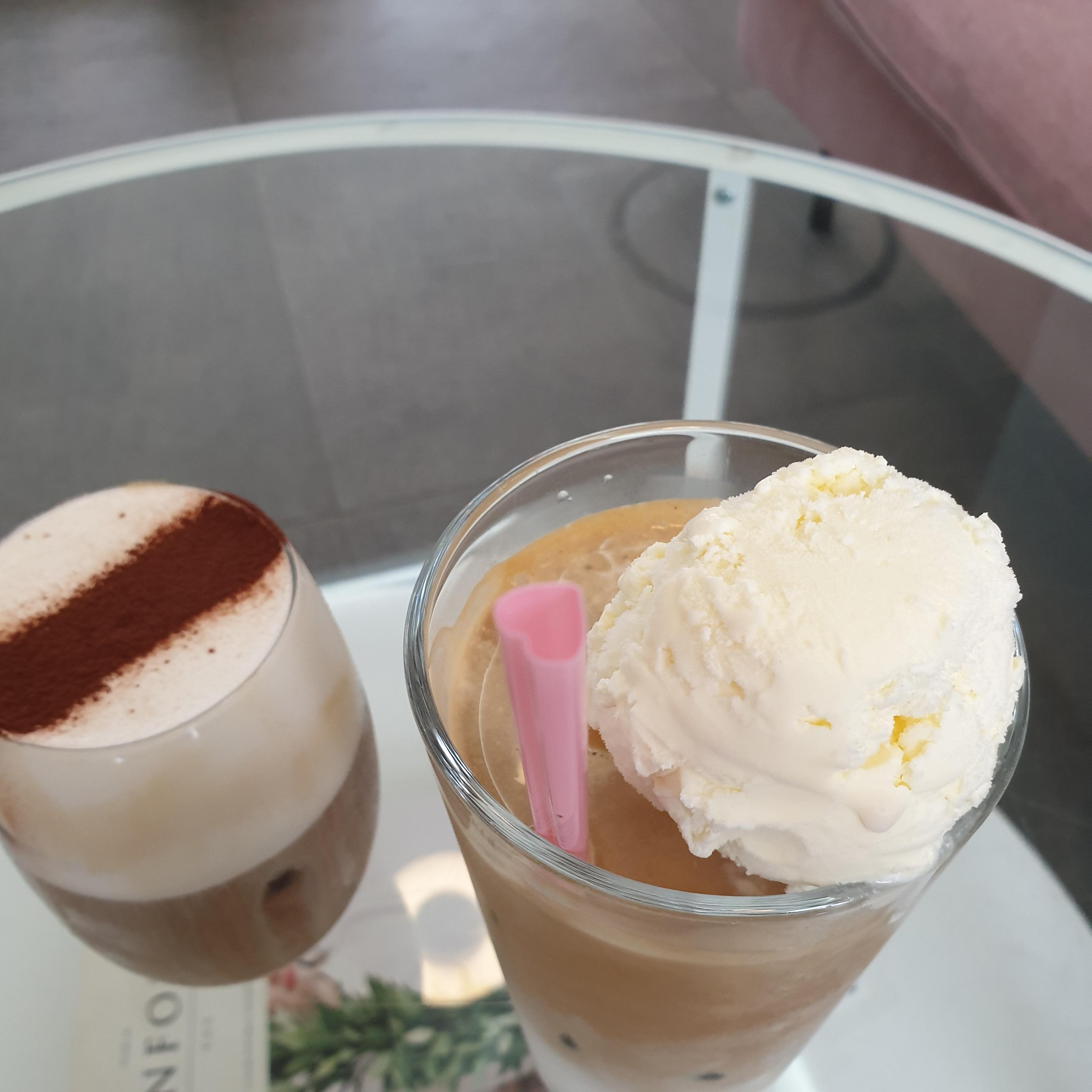 그리고 같이 간 일행은 바닐라 아이스크림이 두덩이나 들어가 있는 썸머라떼를 주문했습니다. 썸머라떼도 저번 겨울에 왔을 때는 없었는데 여름메뉴인거 같아요.