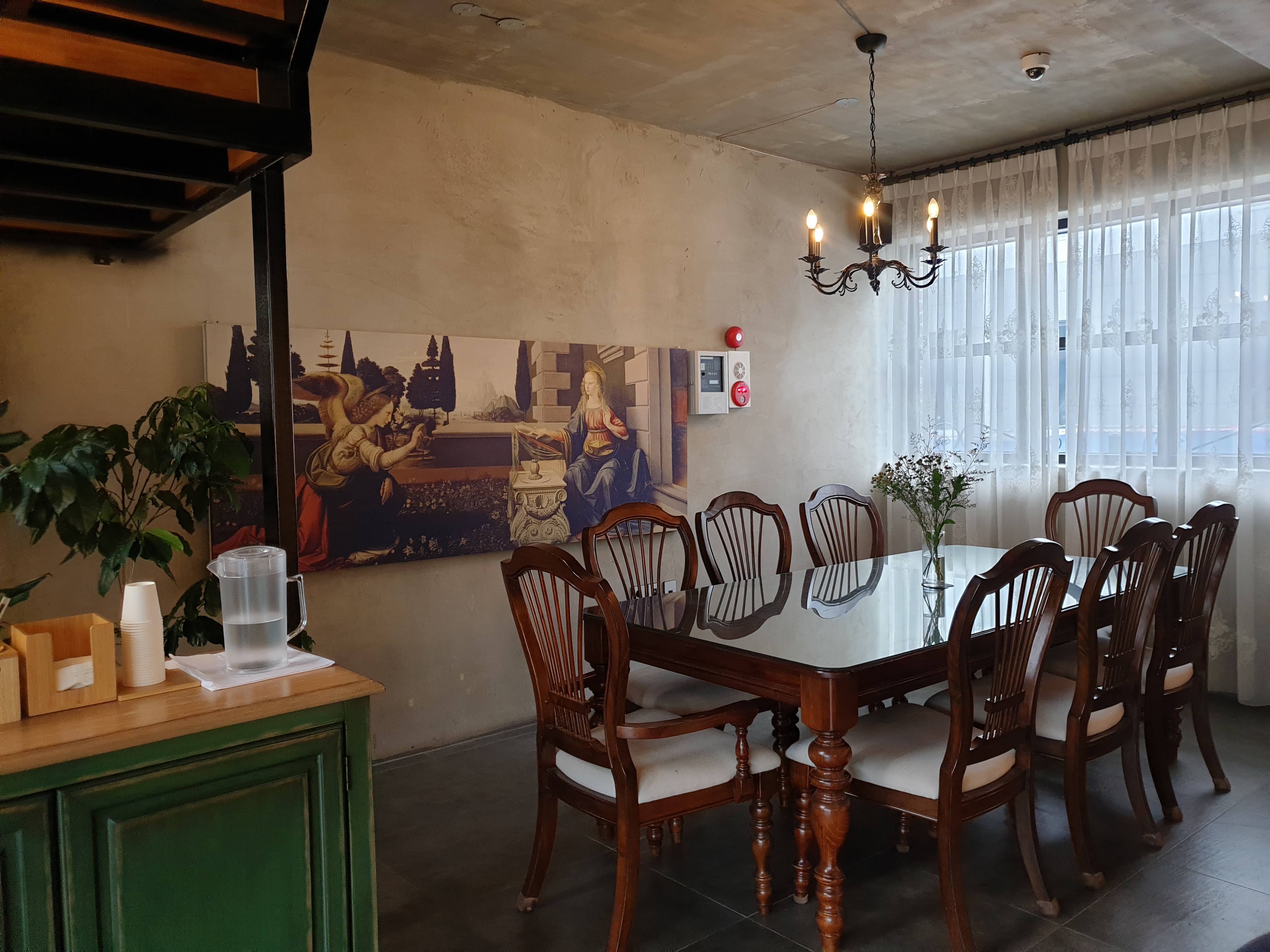 다른 스타일의 긴 테이블이 두 개나 있어서 여럿이서 오기 좋을거 같아요.