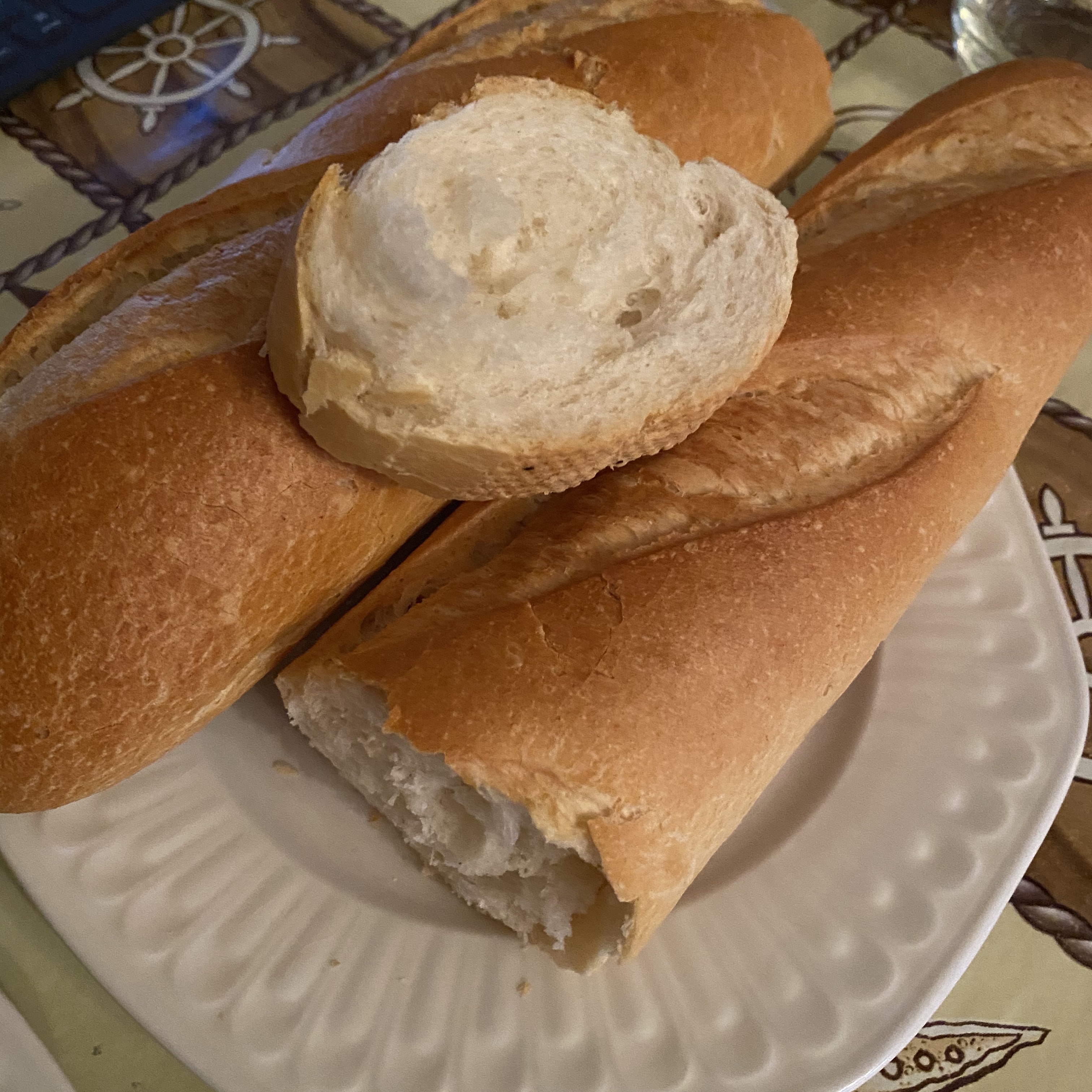 역시 바게뜨 빵 잘라서 둘이서 나눠 먹고!