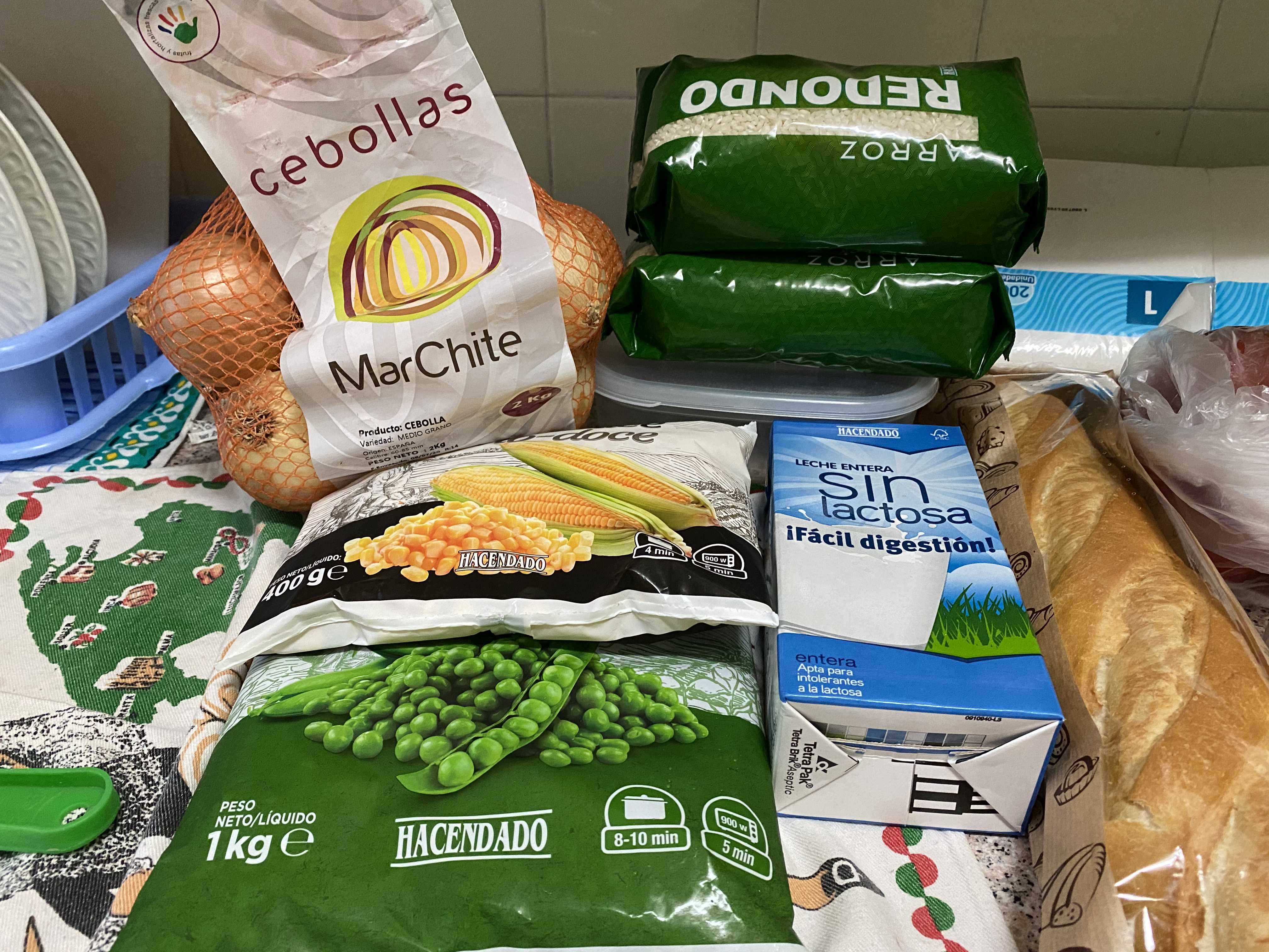 쌀이랑 빵이랑 완두콩과 옥수수와 양파와 유당 없는 우유 히힛 (유당불내증이 심해져서 우유도 락토오즈 없는 걸 먹어야 한답니다ㅠㅜ)