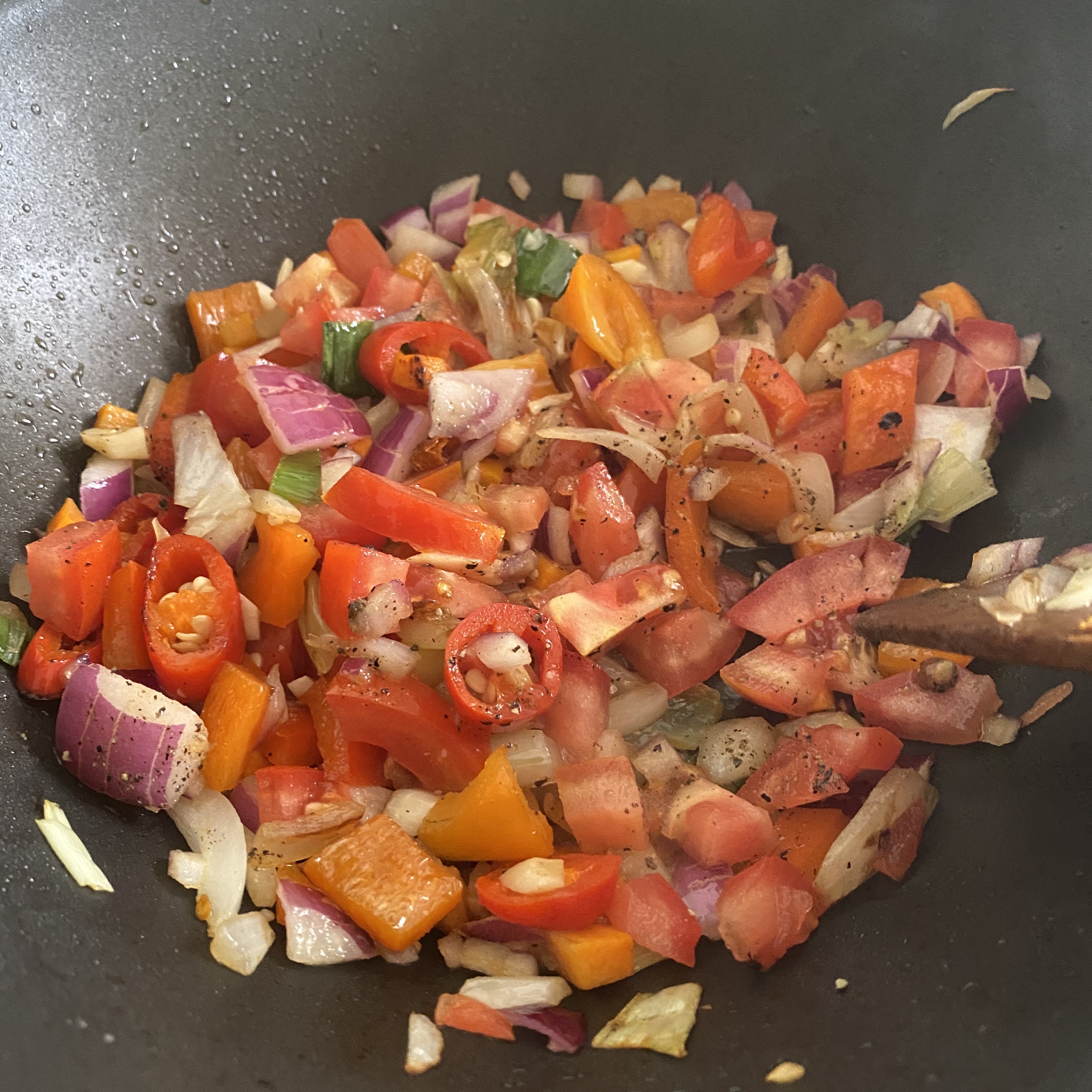 스페인 음식이니 올리브도 듬뿍 넣어주고 거기에 야채들을 볶아주면 된다.