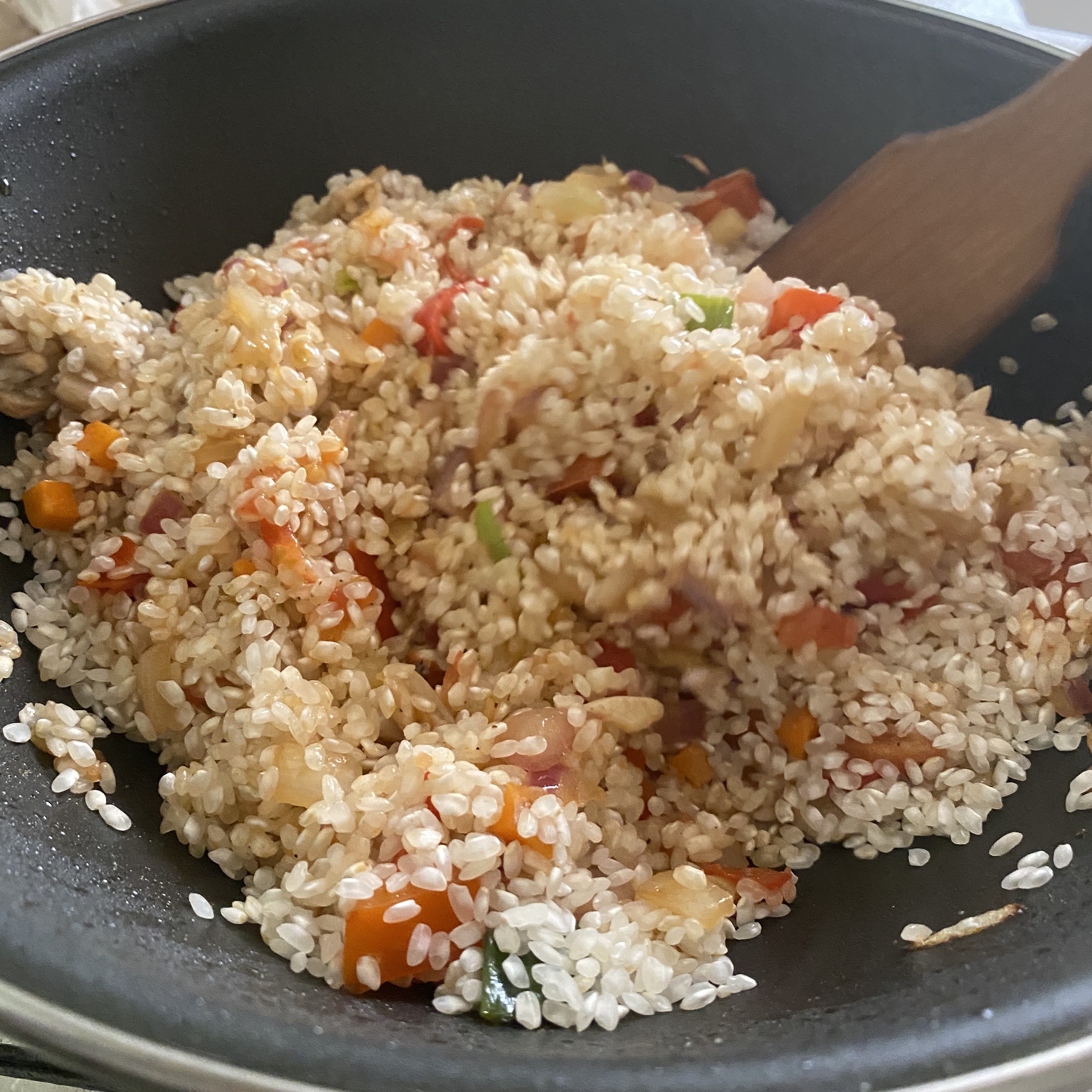 그리고 쌀이 원래 있던 소스를 머금을 수 있도록 볶아준다.