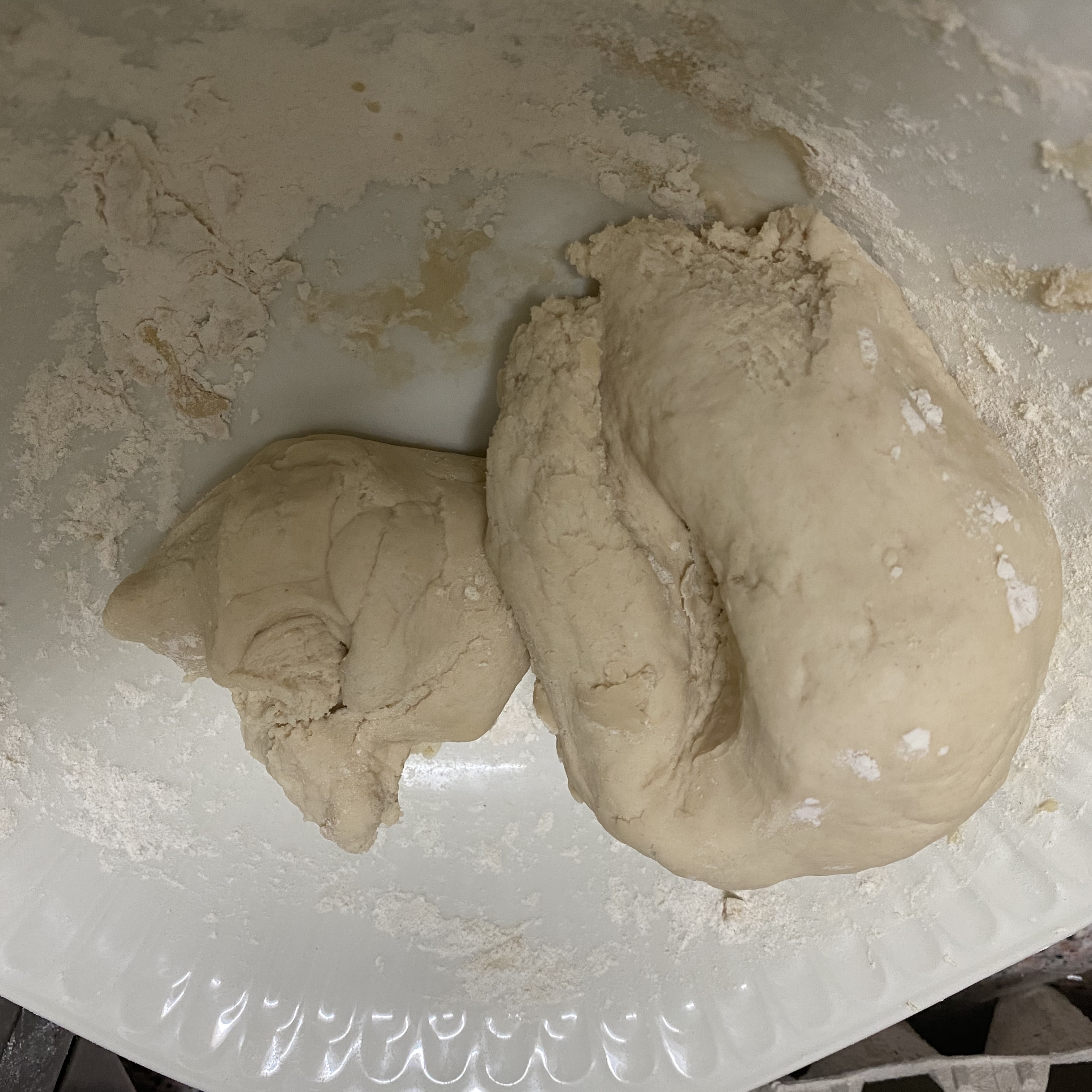 밀가루 250그람, 올리브 오일 한 2숟가락, 소금 한 숟가락을 넣고, 조금씩 봐가면서 맥주를 넣었어야 했는데, 나도 모르게 너무 많이 넣었나. 반죽이 너무 질어서 밀가루를 계속 넣었더니 엄청 커졌다 ㅜㅜ 어쨋튼 나름 반죽을 해서 휴지를 시키고 샤워를 하러 갔다.