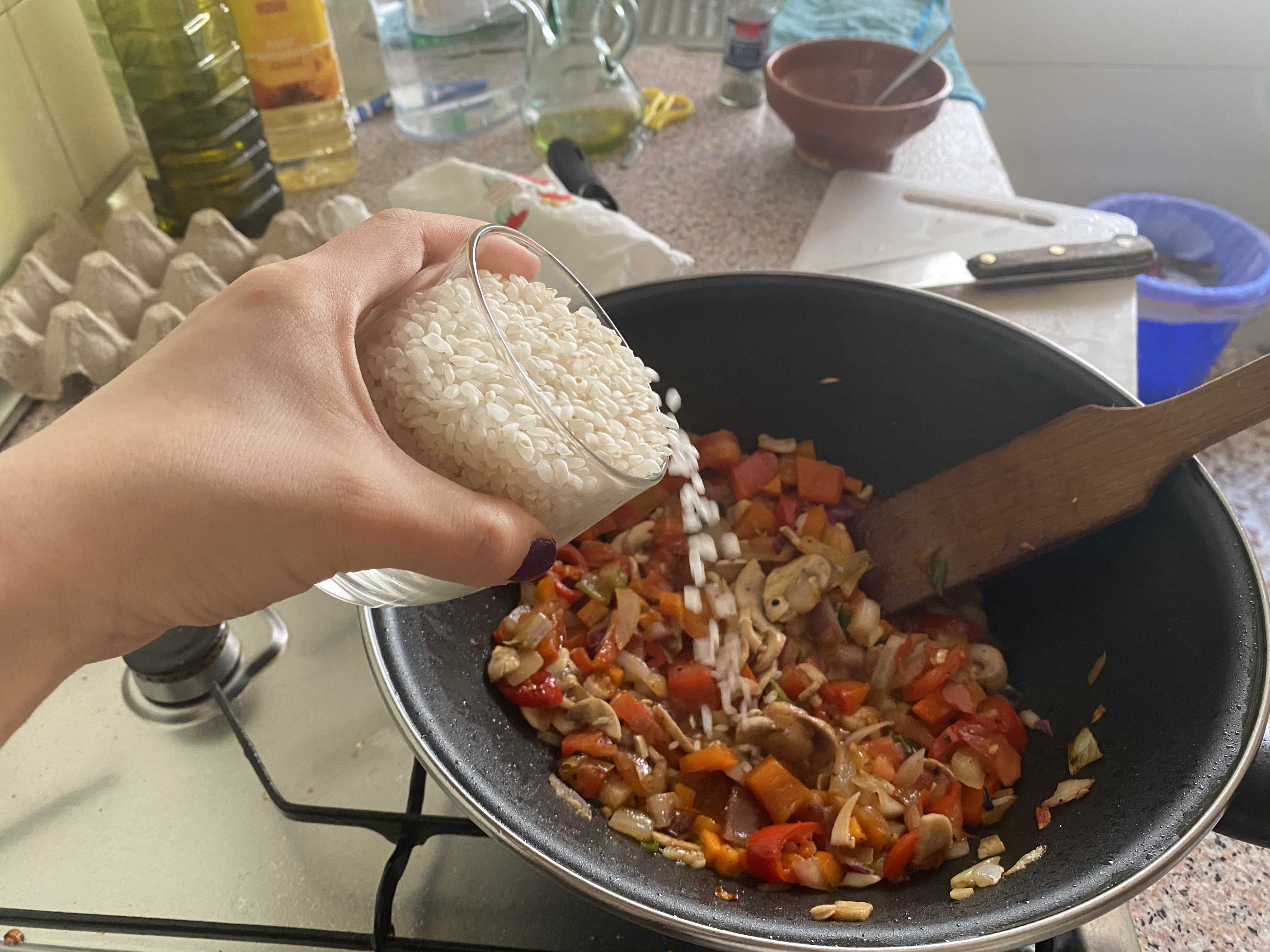 점심은 !! 약간 요리블로거처럼 해야지 헤헷. (허술함 주의) 원래 하려고 했던 요리의 음식은 arroz con pollo (아로쓰 꼰 뽀요)라고 닭을 넣은 밥? 이라고 말할 수 있겠지만, 사실 우리는 고기가 없어서 고기 생략하고, 고기 없는 스페인식 볶음밥을 만들기로 했다.