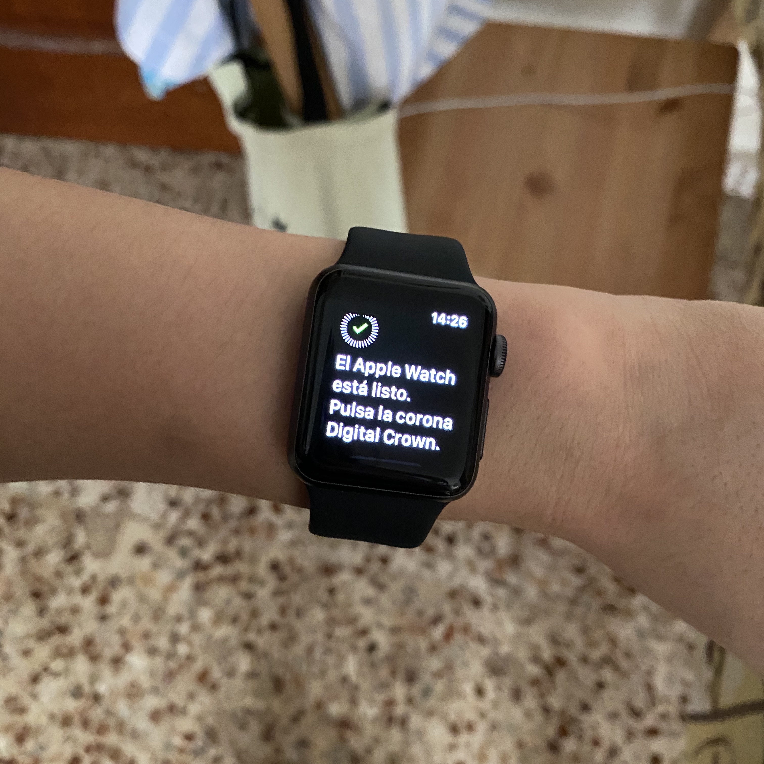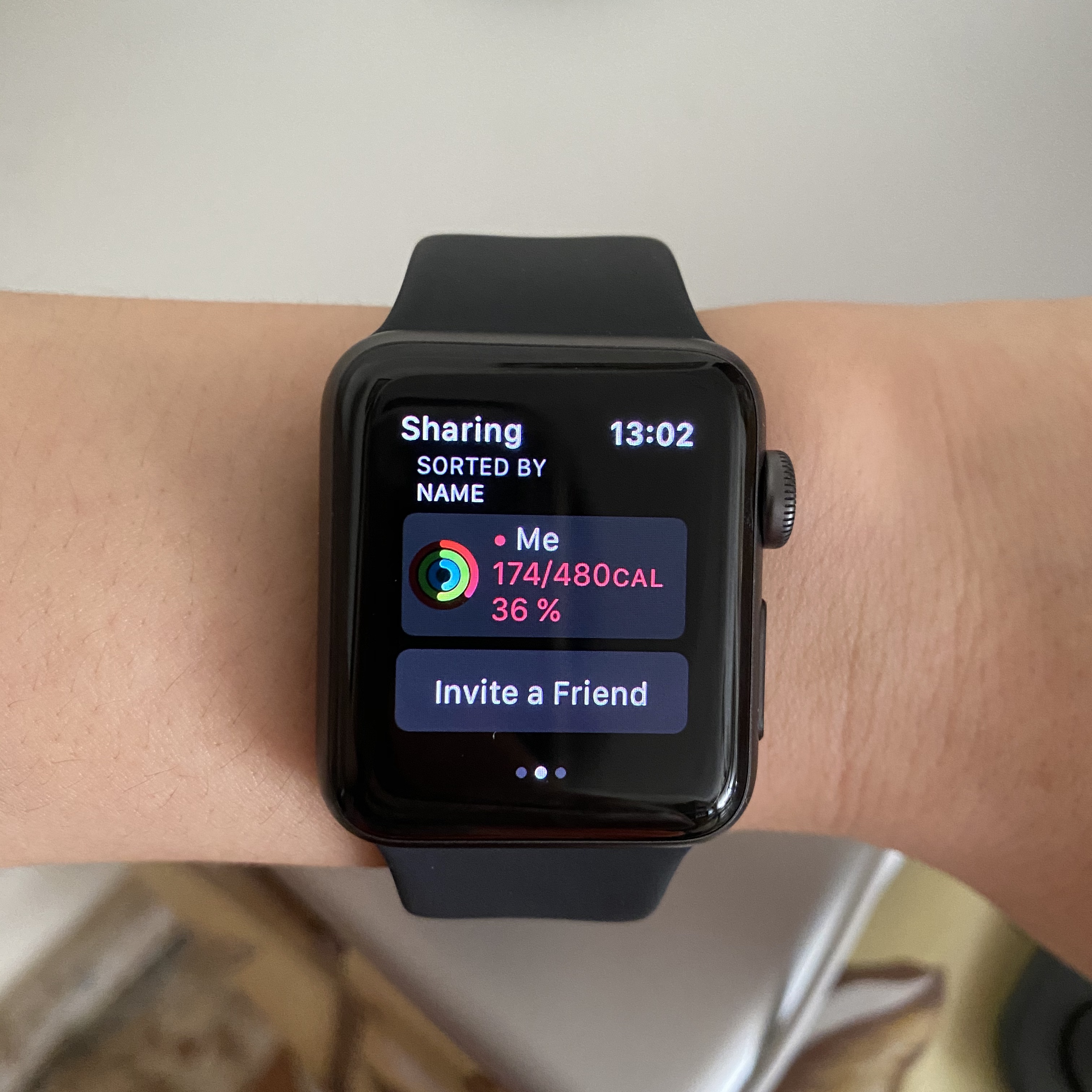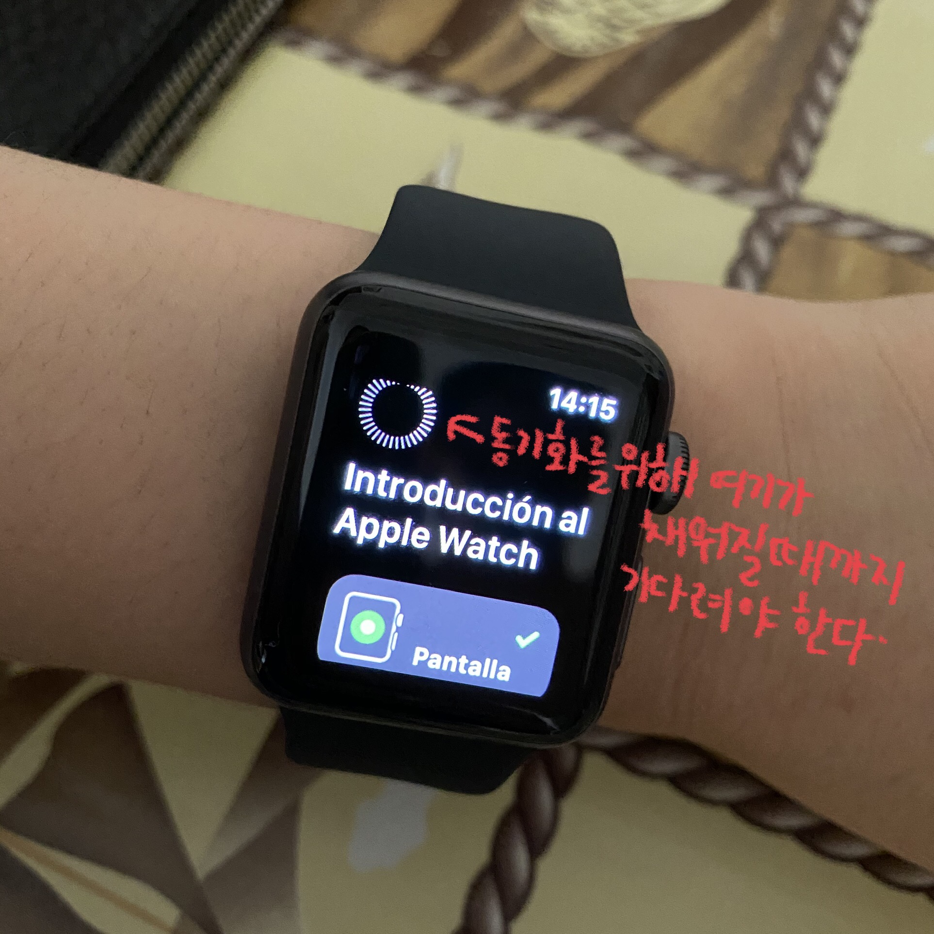 그냥 들었을 때는 오? 가볍다 했는데, 또 손목에 끼니깐 생각보다 묵직했다. 끼고 키보드를 치니깐 되게 이상한 느낌? 사실 시계조차도 잘 안차고 다녔기 때문에 묵직함이 처음에 느껴졌다. 그리고 38mm인데도, 손목에 차니깐 꽉 찬다. 생각보다 크다는 생각이 들었다. 그리고 사실 화이트를 사고 싶었는데, 화이트는 거의 품절이었다ㅜㅜㅜ 그래서 블랙으로 샀는데, 잘 어울리나? 싶었는데, 계속 끼니깐 또 좋다. 새로운 물건이 생겼다. 이거 반응이 굉장히 빠르다. 시리즈 5의 AOD가 탐나긴 했는데, 손목 들면 바로 인식을 하니, 편하다.