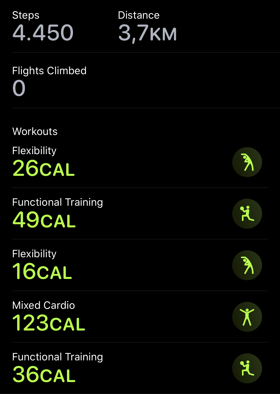 - 초록색은 운동시간이다. 운동을 최소 30분 하는 것으로 목표로 디폴트로 저장되어 있고, 바꿀 수는 없는 것 같다.