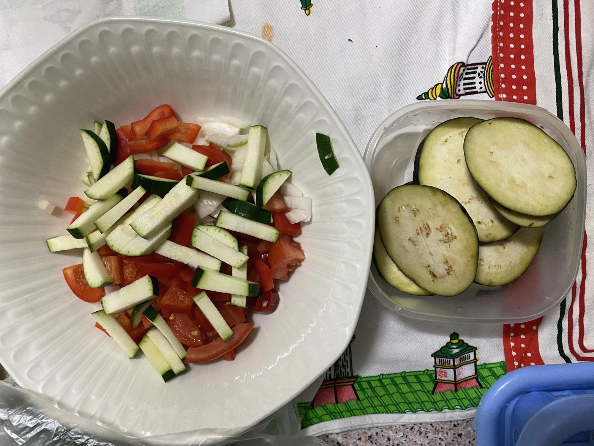 저녁에 운동 열심히 하고 샤워도 하고 저녁 준비를 했다. 가지가 있어서 원래는 추천해 주신 가지밥을 해 먹으려고 했는데, 한 개만 사와서 ㅎㅎㅎ (가지밥을 하려면 가지가 적어도 2~3개는 필요하다는 걸 사고 나서 알았다.) 다른 걸 해 먹기로 했다. 가지피자?를 해 먹으려고 했다.