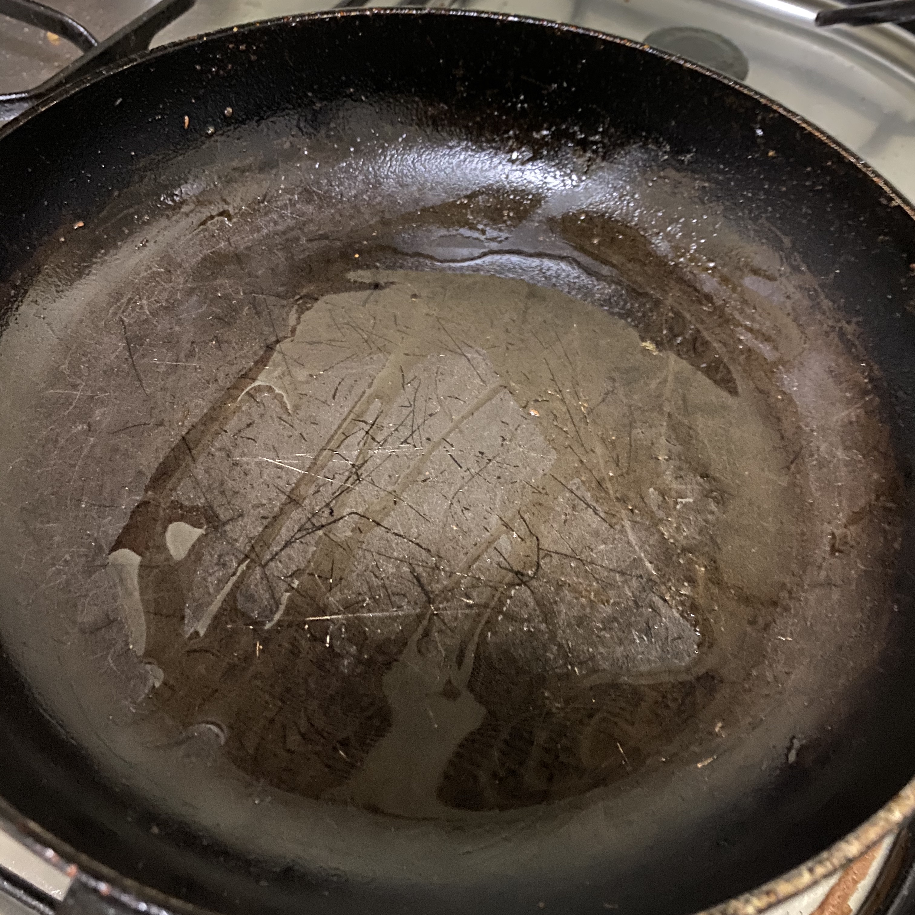 재료들이 다 익었으니 한 쪽 그릇에 담아주고 후라이팬을 살짝 닦아주고, 오일을 살짝 둘러줬다. 이제 가지를 넣을 차례이다.