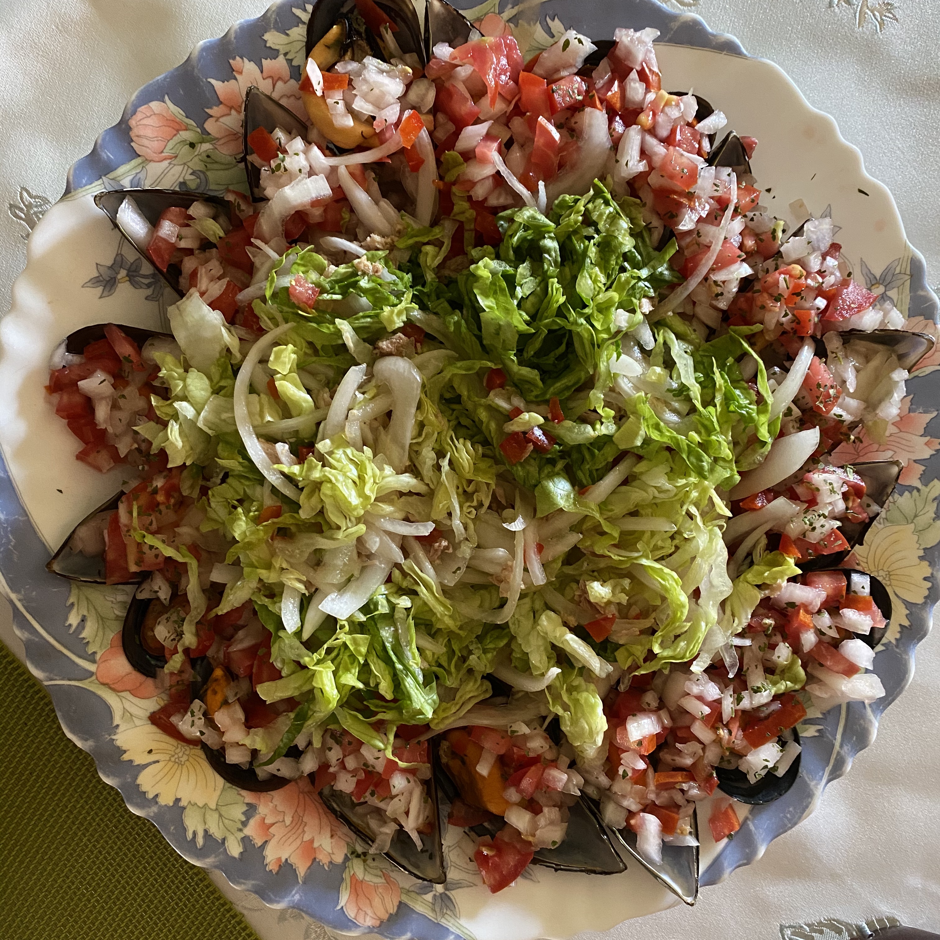 그래서 점심은 페루 음식이다! 이름은 모르는데, 저 노랗게 생긴 소스가 호박으로 만든 소스이다. 정확하게 어떻게 만드는 지는 모르겠지만, 호박 긁어서 야채들 넣고 끓이지 않나 싶다. 그리고 고기는 뼈 없는 닭다리 살이다. 중간에 있는 샐러드는 홍합 샐러드인데, 홍합을 익혀서 그 위에 양파와 피망 등 샐러드 야채를 얹은 건데, 이거 정말 맛있다.