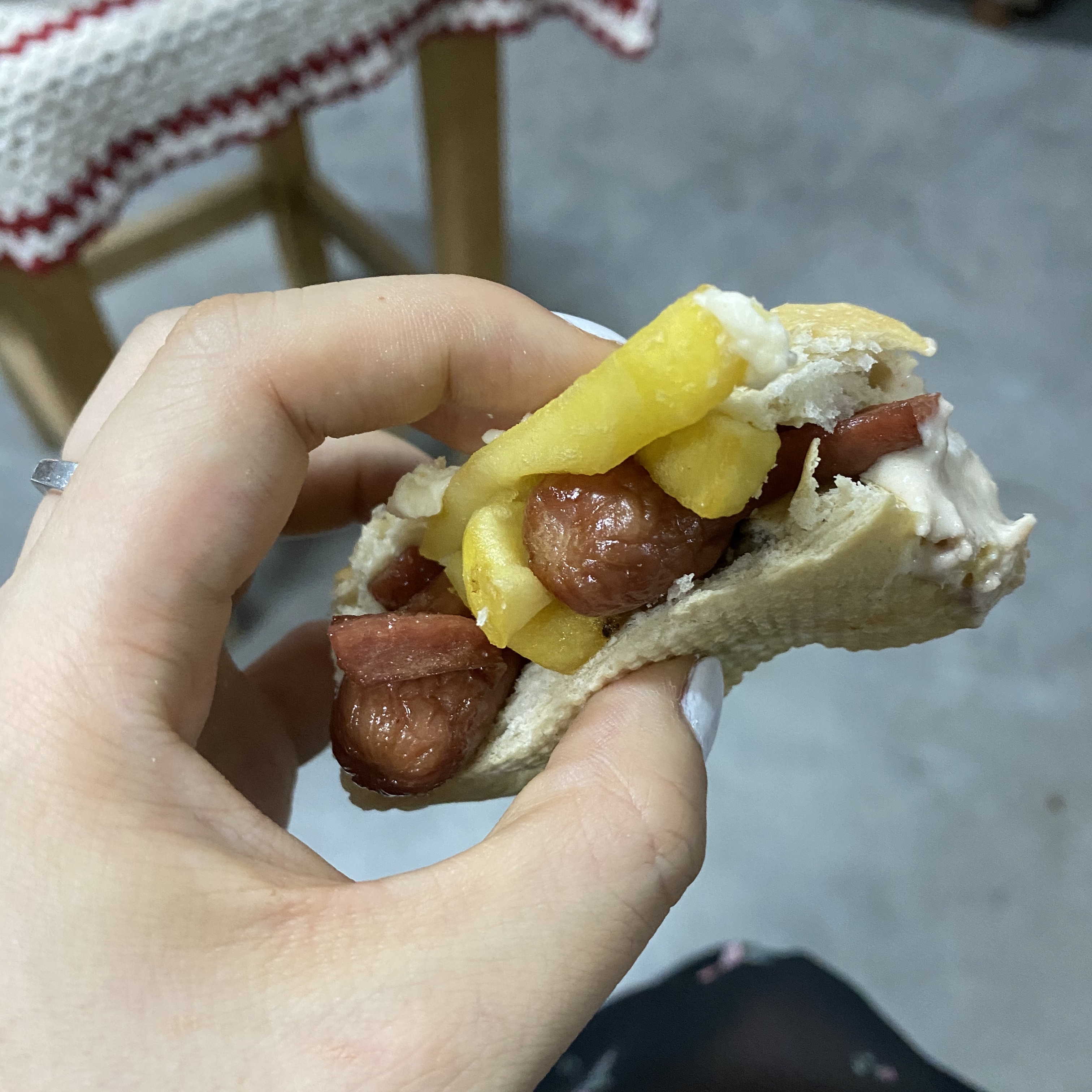 소시지와 감자튀김을 이렇게 빵에 넣어 먹으면 된다.