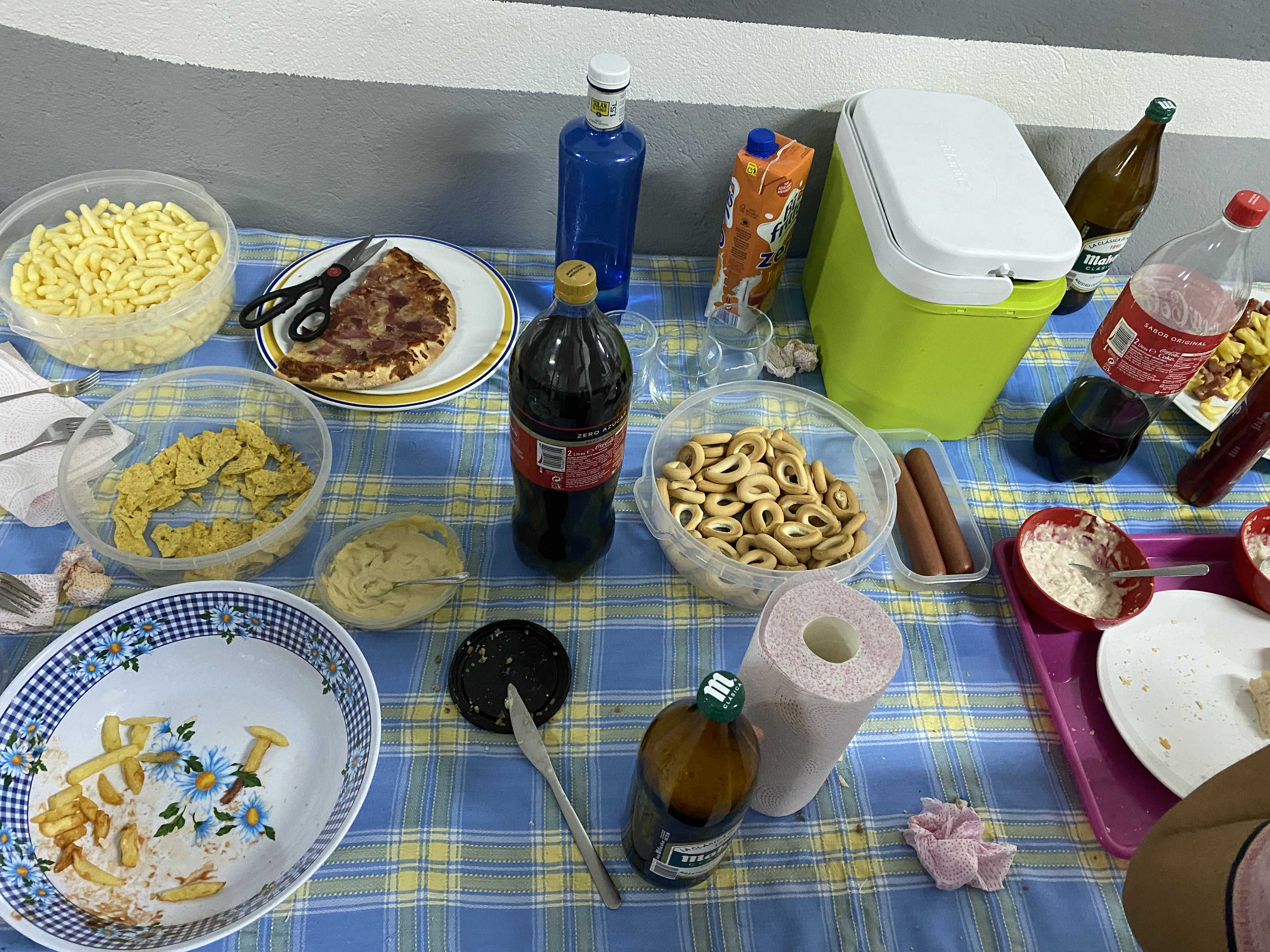 깜박하고 늦게 찍어서 거의 접시가 비어 있다 ㅎㅎㅎ 사실 음식이라기보다는 그냥 주워먹을 것들? 감자튀김, 빵, 과자, 나쵸, 소시지, 피자 등등이 있었다.