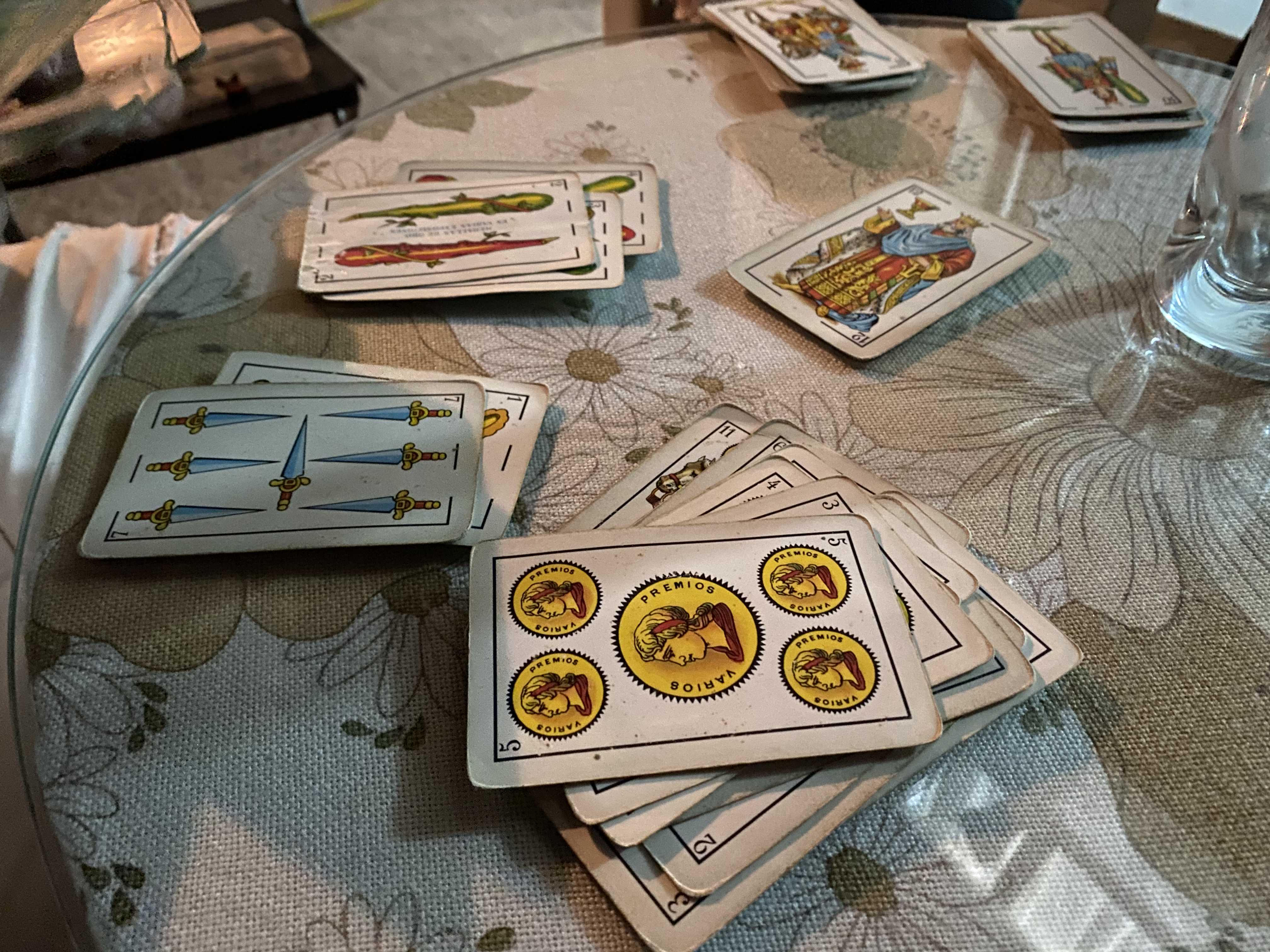 이렇게 먹고 놀다가 카드 게임도 했다. 여러가지 게임을 했다. 그리고 저렇게 생긴 카드가 스페인에만 파는 카드인데, 몇 개의 숫자가 없다. **스페인 카드 게임도 따로 있는데, 몇 번 해 본 것 같은데, 너무 어려워서 아직도 이해를 못 했다.