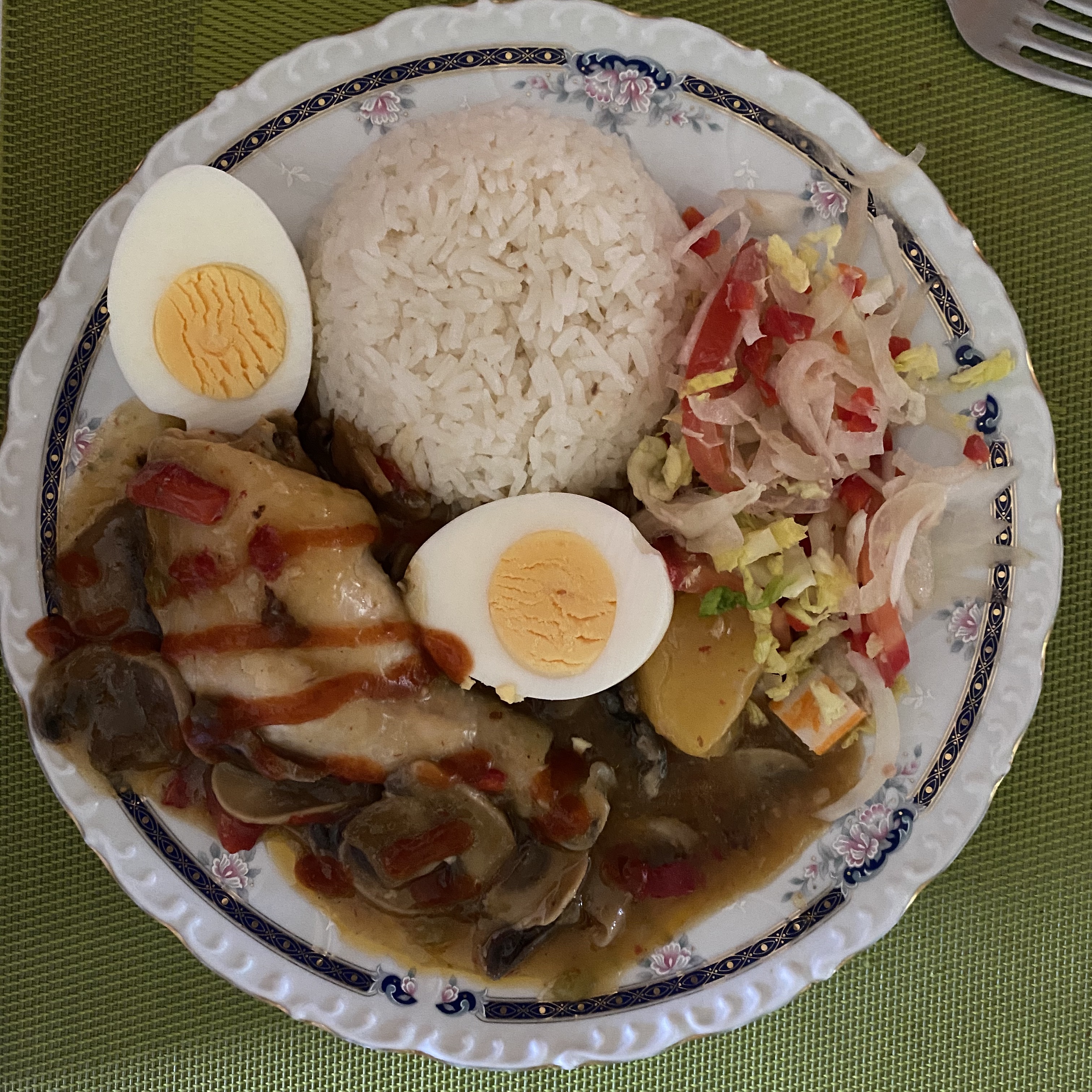 맨날 똑같은 오전이다. 원서도 읽고, 딴짓도 많이 하고, 그러니깐 벌써 점심시간이 되었다. 점심은 커리 소스의 닭요리인데, 먹을 때는 커리인지도 몰랐네, ㅎㅎ 메인에는 스리라차 소스도 뿌려줬다. 이 외에는 사진에서처럼 샐러드도 있고, 삶은 계란도 있고, 밥도 있다. 여기에 와인도 마셨다. 저번에 소개했던 띤또 데 베라노도 마셨다. 와인이 엄청 저렴한 거라서 그냥 먹으면 쓰고, 신맛도 나는데, 여기에 레몬 음료를 넣어주면 훨씬 맛이 나아진다. 그냥 저렴한 와인 마시려고 만든 음료인 것 같다.
