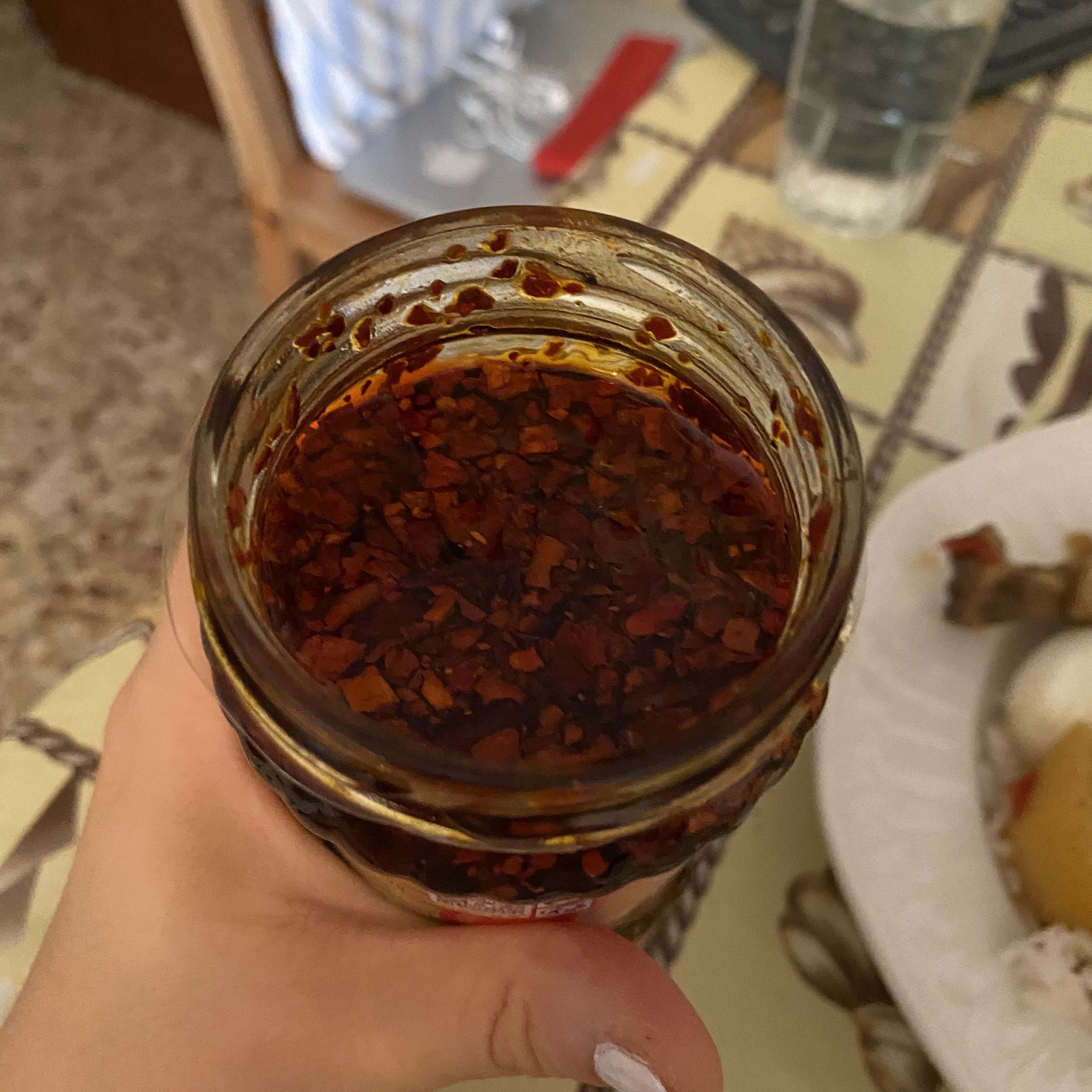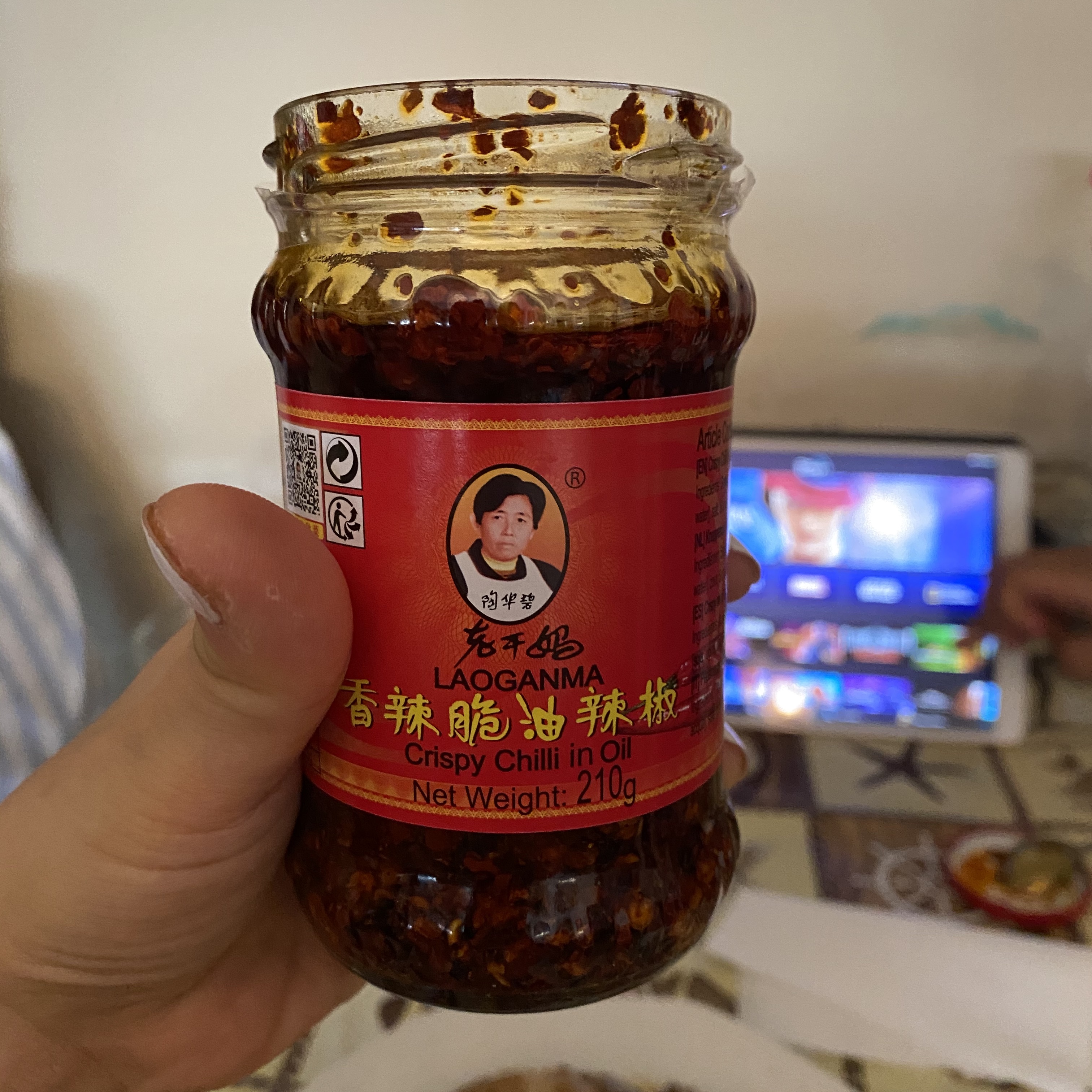 아 그리고 소개하고 싶은 소스가 하나 있다. 저번에 아시안 마트에서 산 소스인데, 예전에 친구가 소개해줘서 알게된 소스이다. 고추기름 소스이다. 안에 콩도 들어있다. 한 중국 아줌마 얼굴도 걸려 있다. 이거 밥에 그냥 비벼먹어도 맛있고, 나중에 마라 비슷한 느낌으로 볶음 국수 해 먹어도 맛있다. (나중에 볶음 국수를 하게 된다면 레시피를 올리게요)