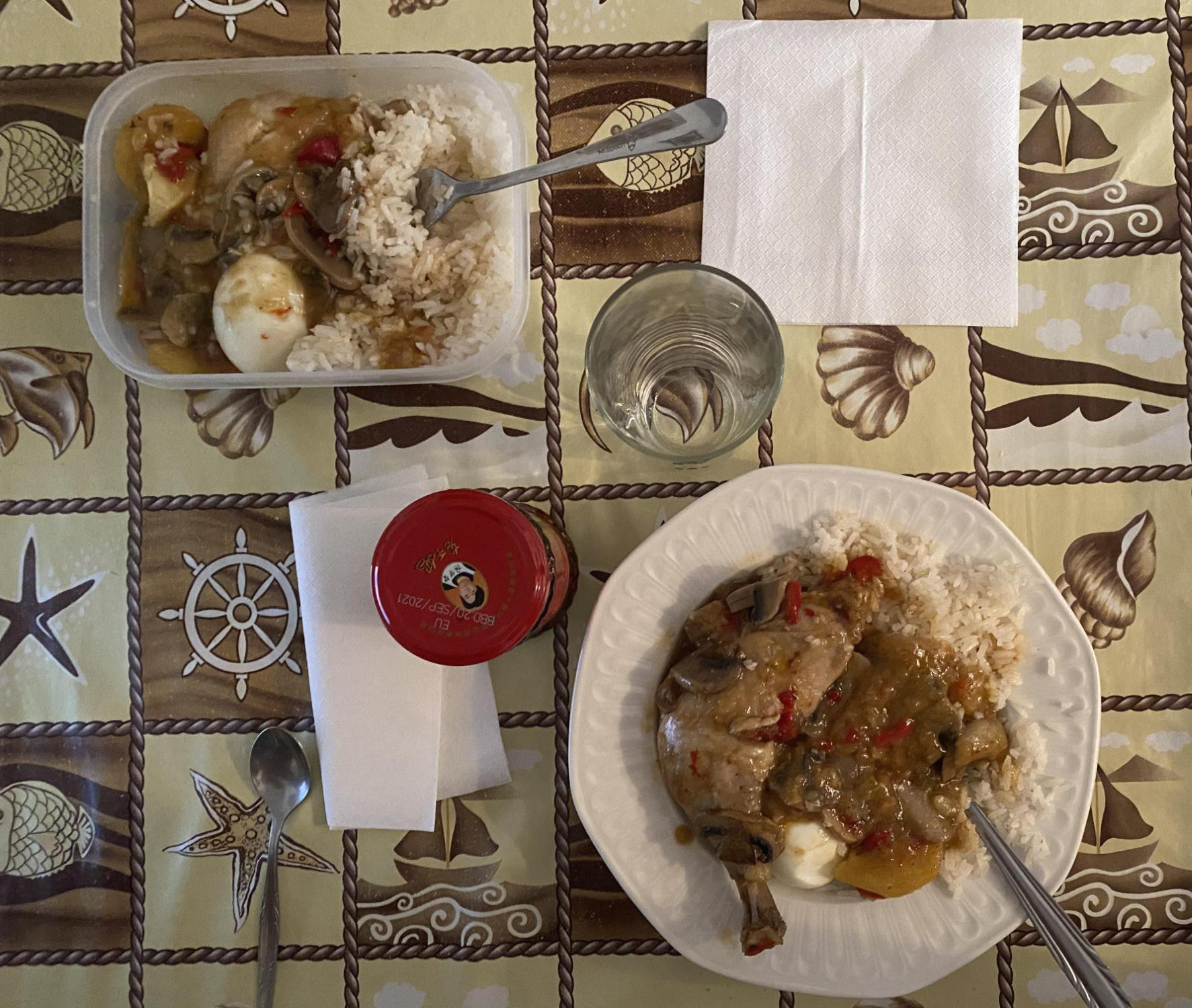 점심은 어제 남자친구네 부모님께서 싸 주신 음식! 어제랑 똑같은 음식이다. 커리 소스에 닭요리. 남자친구는 설겆이 늘리기 싫다고 싸주신 용기에 그냥 먹는다 ㅎㅎ