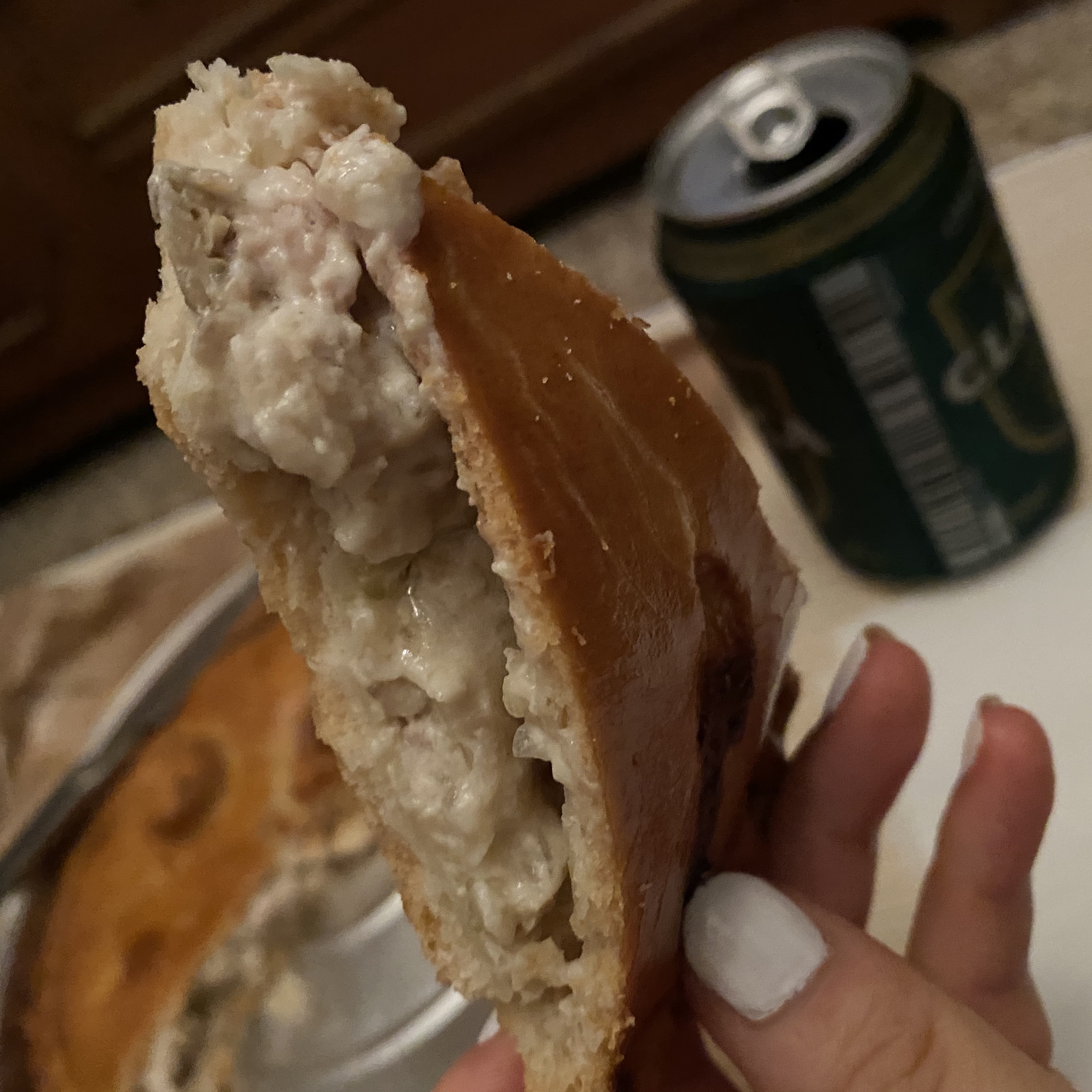 안에를 자르면 이렇게 닭과 버섯이 들어있는데, 소스가 크림 소스였다. 오! 맛있다. 처음에는 반죽이 너무 두꺼운거 아닌가 싶었지만, 안에 내용물도 나름 괜찮은 것 같다. 이게 3.50유로, 약 4500원정도다. 둘이서 저녁 해결했다. ㅎㅎ 맛있네 정말.