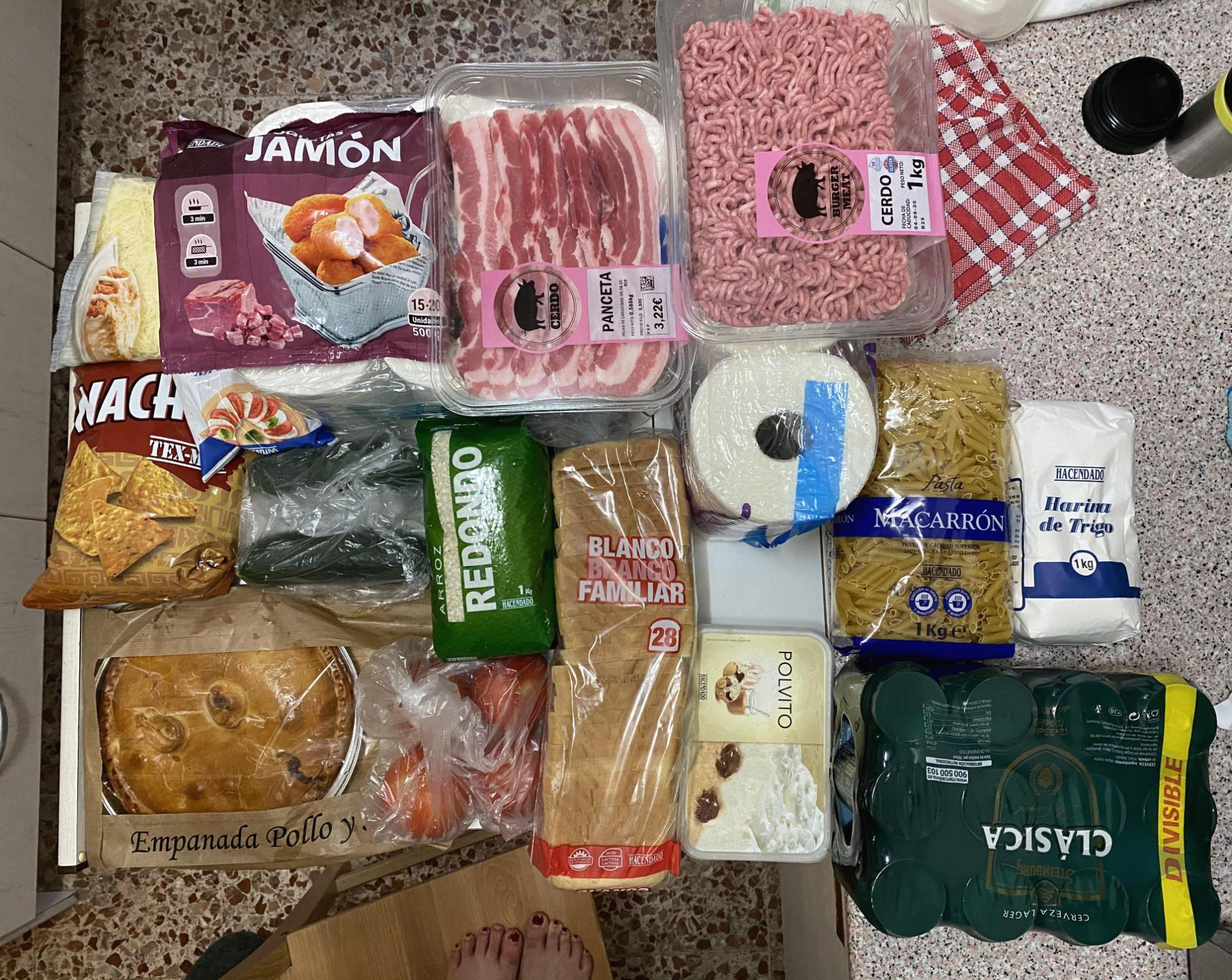 뭔가 굉장히 많이 샀다. 사실 집에 떨어진 게 많았다ㅜ 휴지랑 키친 타올도 없었고, 식빵, 밀가루, 쌀, 파스타도 다 떨어진 상태였다. 오랜만에 고기와 야채들도 사고, 맥주도 사고 ㅎㅎㅎ 그리고 나쵸와 아이스크림도 사고! 그리고 저기 왼쪽 아래에 Empanada pollo y...라고 적혀있는 것도 샀다. 이렇게 해서 총 32,79유로. 약 42,600원정도다. 많이도 샀네. 둘이 낑낑대면서 들고 왔다.