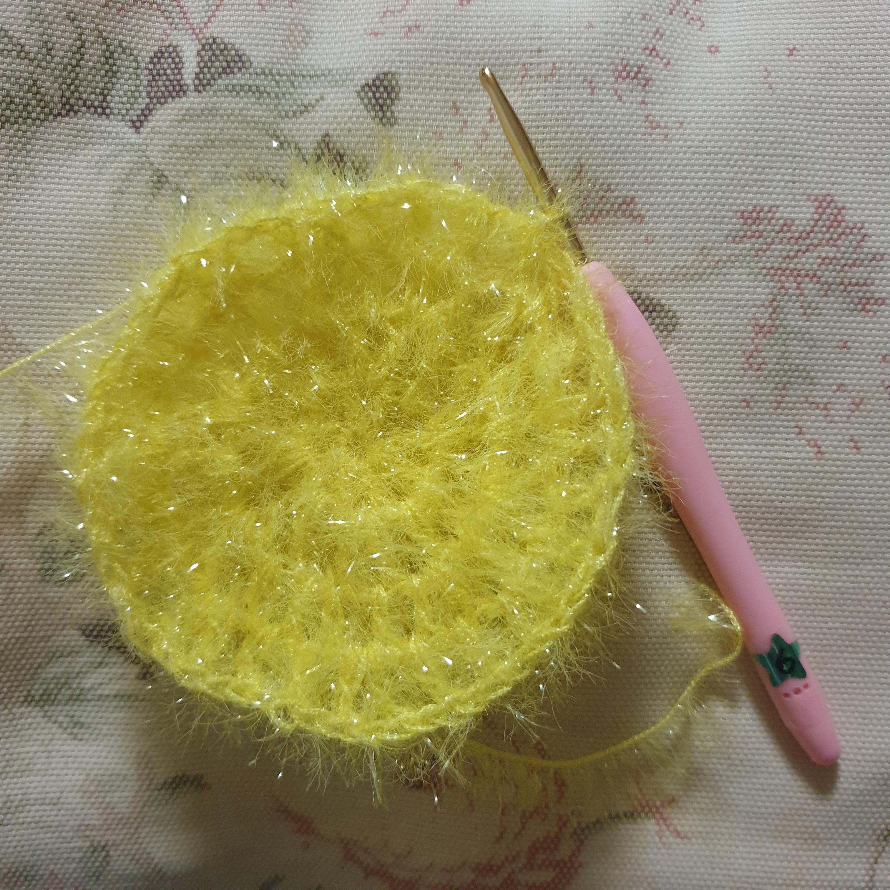 지난번에 만들던 단면 수세미랑 동일하게 '사슬뜨기 → 한길길뜨기 → 빼뜨기'로 동그란 원 한 단씩을 만들었다. 두번째 하는거라 처음보다는 조금 더 작고 촘촘하게 만들었다. 하지만 아직도 동그라미가 삐뚤빼뚤하다. ㅎㅎ