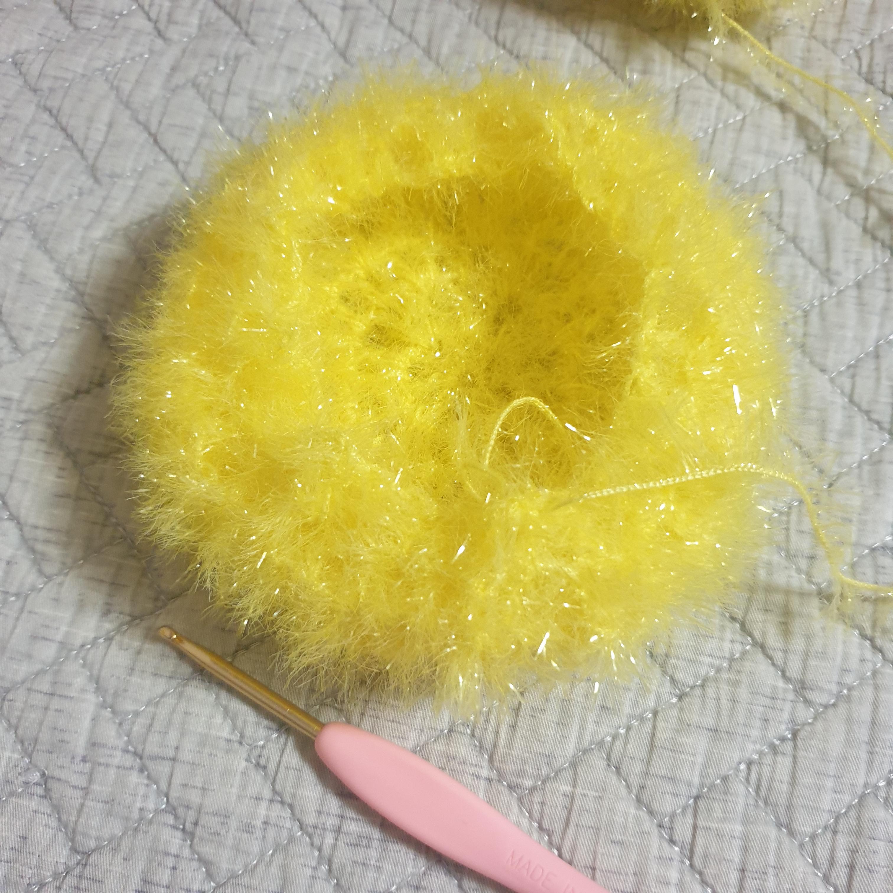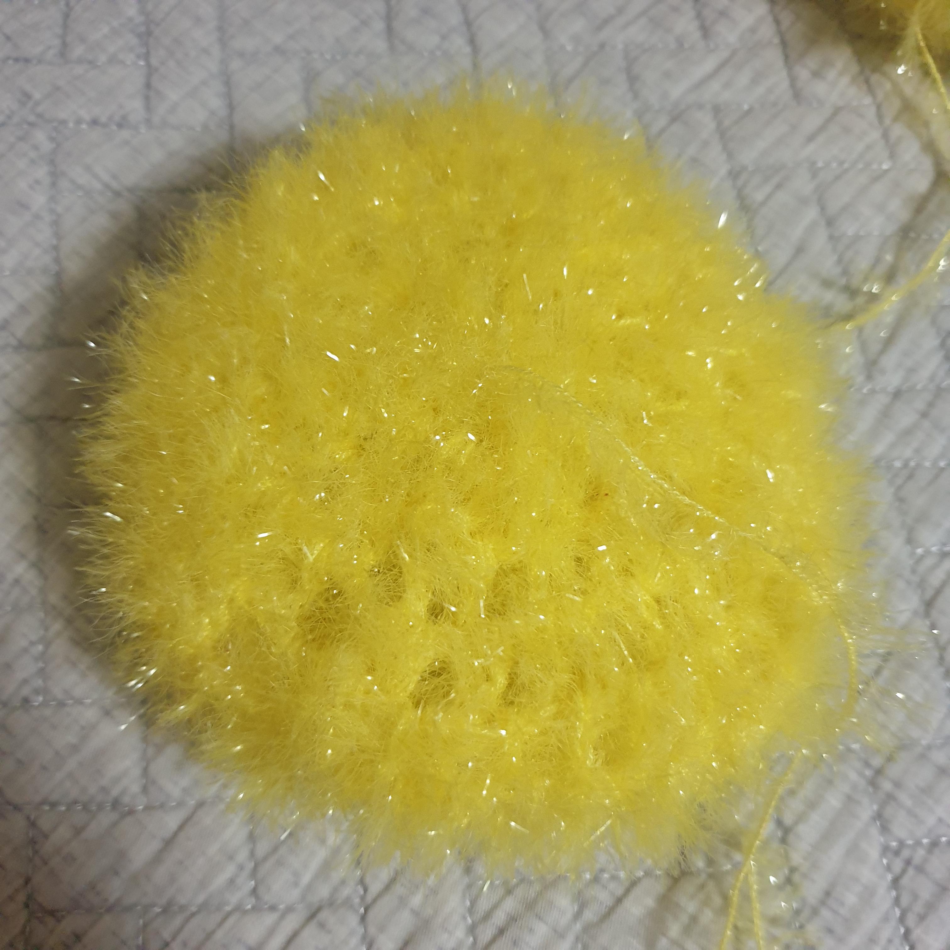 호빵 수세미는 코바늘로 수세미를 동그랗게 점점 크게 만들다가 다시 점점 작게 만들어 마무리했다.